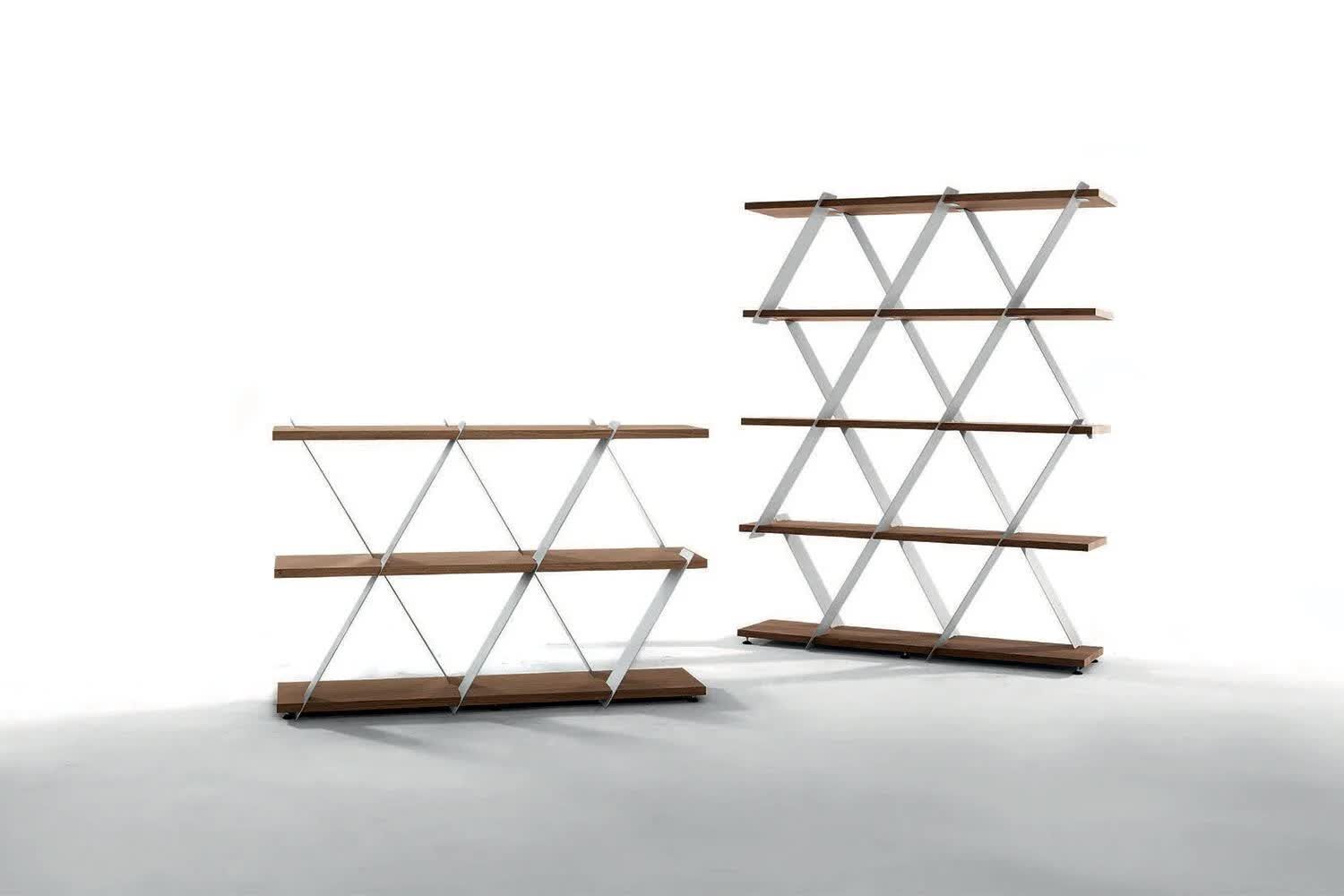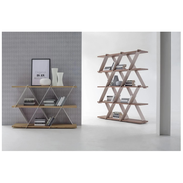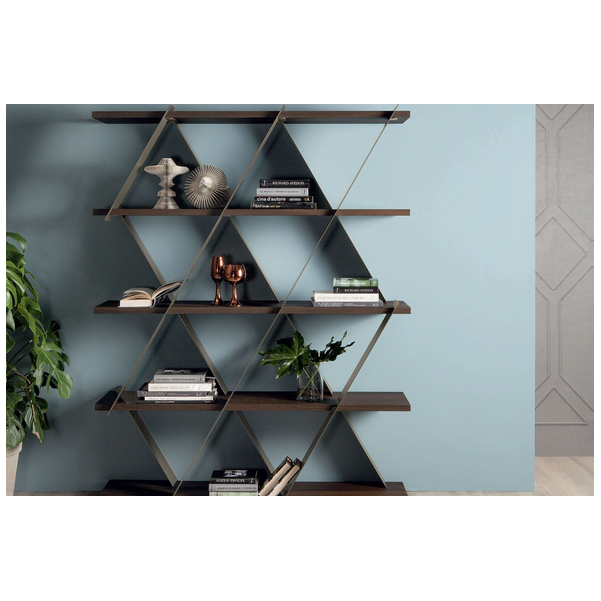 Wyjątkowy i stylowy regał Castle marki Tonin Casa to piękny sposób na wyeksponowanie biblioteki i elementów współczesnego wystroju. Przypominający domek z kart ten regał w zabawny sposób wykorzystuje geometrię w salonie. Ponieważ utalentowani włoscy rzemieślnicy używają tylko najlepszych materiałów, półki są solidne i trwałe, aby z łatwością pomieścić przedmioty. Wyprodukowany we Włoszech, aby zapewnić jakość, regał Castle jest nowoczesnym arcydziełem. Jest dostępny w wersji krótkiej i wysokiej, a półki są dostępne w różnych wykończeniach drewna. Wybierz między różnymi matowymi kolorami ramy.