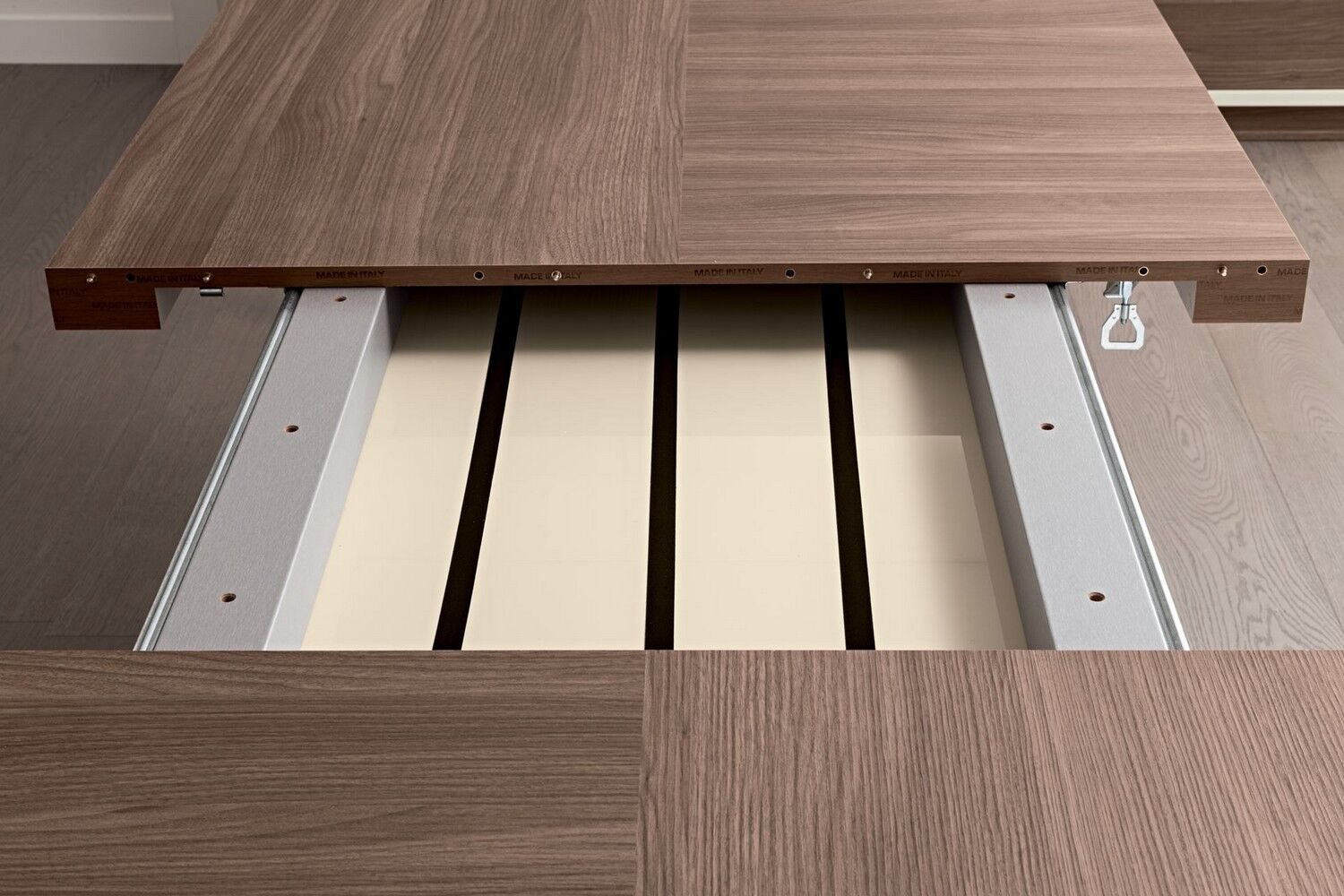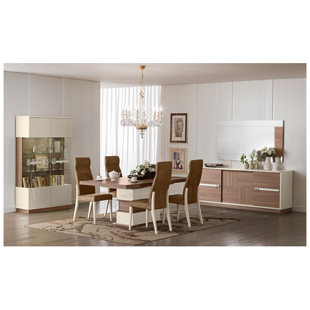 Nowoczesny włoski stół do jadalni Evolution ma piękne drewno i kontrastujące wykończenie w kolorze kości słoniowej. Ten włoski zestaw do jadalni może pomieścić od 4 do 10 osób i jest idealny zarówno dla mniejszych, jak i większych rodzin.