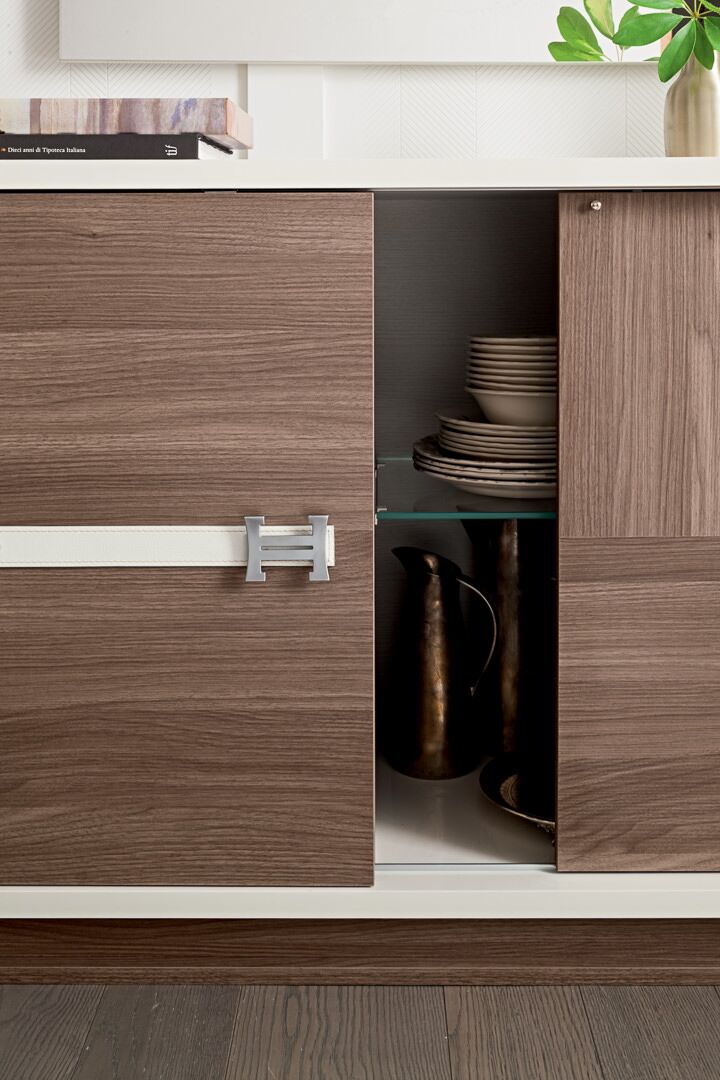 Inne elementy z kolekcji Evolution to 2-drzwiowy i 4-drzwiowy kredens z dopasowanym lustrem oferującym dużo miejsca do przechowywania oraz wybór 1-drzwiowych i 2-drzwiowych witryn z wewnętrznym oświetleniem LED. Szafka RTV jest również dostępna, jeśli chcesz poszerzyć kolekcję o salon. Kredensy, gabloty i szafki RTV również oferują wybór uchwytów. Pokazana na zdjęciach piękna rączka z logo na skórzanym pasku zmienia modele Evolution w bardzo nowoczesną współczesną kolekcję.
