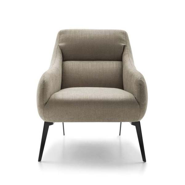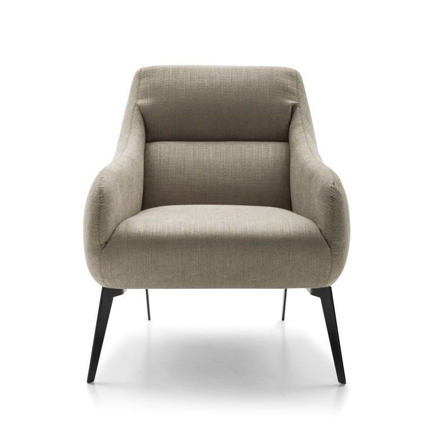 Fotel Dia firmy Nicoline Italia to wspaniały mebel, który robi imponujące wrażenie w nowoczesnym salonie. Przyciągające wzrok są pochylone podłokietniki i misterne szwy w paski. Dzięki skośnym nogom i lekko zakrzywionemu tyłowi zapewnia ergonomiczne wsparcie sprzyjające prawidłowej postawie, a tapicerka zapewnia wygodę przez wiele godzin. Dzięki eleganckiej sylwetce dobrze komponuje się z resztą współczesnych mebli. Opcje tapicerki obejmują szereg tkanin i skór, nogi są wykończone w różnych metalowych opcjach. Szwy są w dopasowanych, jaśniejszych lub ciemniejszych kolorach.