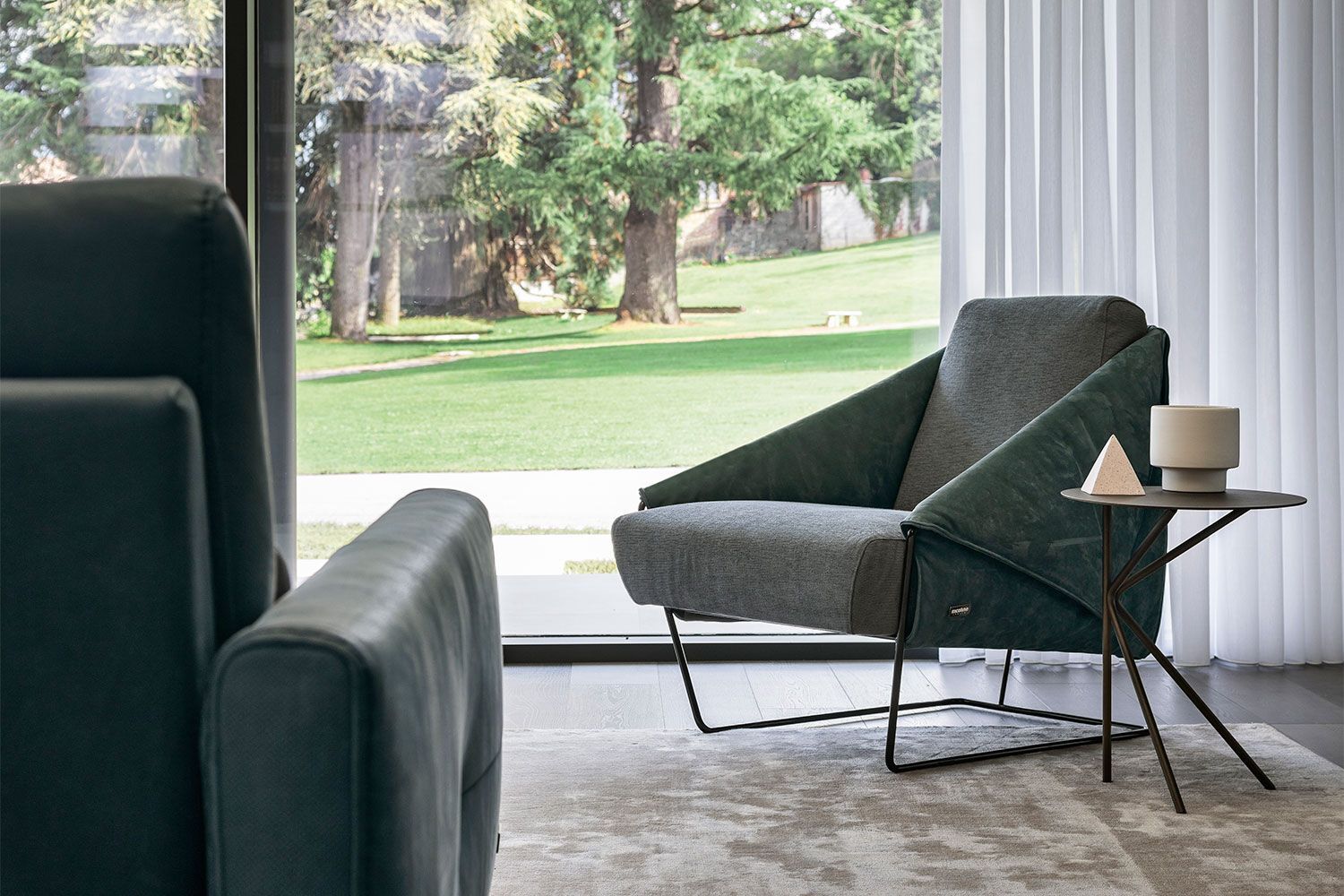 Inspirowany geometrią, praktyczny fotel Gioia firmy Nicoline Italia jest idealnym elementem do nowoczesnego salonu. Pochylone pod kątem podłokietniki mają trójkątny kształt z boku i zestawiają się z kwadratowym oparciem i siedziskiem, co przyciąga wzrok. Dzięki miękkiej i luksusowej tapicerce zapewnia komfort przez wiele godzin. Wyprodukowany we Włoszech, aby zapewnić jakość, fotel Gioia jest dostępny w szerokiej gamie tkanin i skór. Metalowa podstawa ma różne wykończenia, a szwy mogą pasować do materiału lub mieć jaśniejszy lub ciemniejszy kolor.