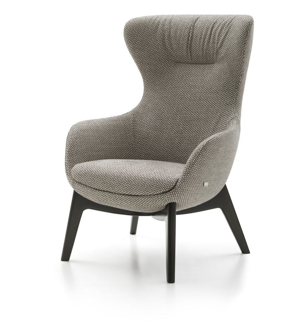 Fotel Iseo Nicoline Italia bezproblemowo łączy wygodę ze stylem, dzięki miękkiej wyściółce i unikalnemu profilowi. Dzięki przyciągającym wzrok krzywiznom i ukośnym nogom tworzy oszałamiający kontrast, który sprawia, że fotel jest pięknym punktem centralnym, który pasuje do reszty nowoczesnych mebli. Wielowymiarowa sylwetka tworzy głębokie siedzisko, które dopasowuje się do ciała, zapewniając wsparcie i przytulność. Wyprodukowany we Włoszech z niezwykłą dbałością o szczegóły, fotel Iseo jest dostępny w wersji stałej i obrotowej. Wybierz spośród wielu opcji tapicerki materiałowej i skórzanej, a także różnych wykończeń drewnianych nóg. Szwy są dostępne w dopasowanych, jaśniejszych lub ciemniejszych kolorach w celu dodatkowego dostosowania.