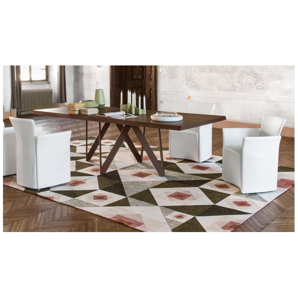 Fotel model Nido z podłokietnikami, w całości tapicerowany. Rdzeń w metalowej rurze został spieniony na zimno poliuretanem, materiałem, który zachowuje swoje właściwości przez długi czas. Aby fotel był wygodniejszy, podstawa siedziska wsuwa się pod środkową część na około 10 cm. Cienki profil z zaokrąglonymi narożnikami i odsłoniętymi szwami biegnącymi wzdłuż boków elementów. Cztery wytrzymałe plastikowe nóżki, ukryte pod podstawą, utrzymują ją uniesioną nad ziemią.