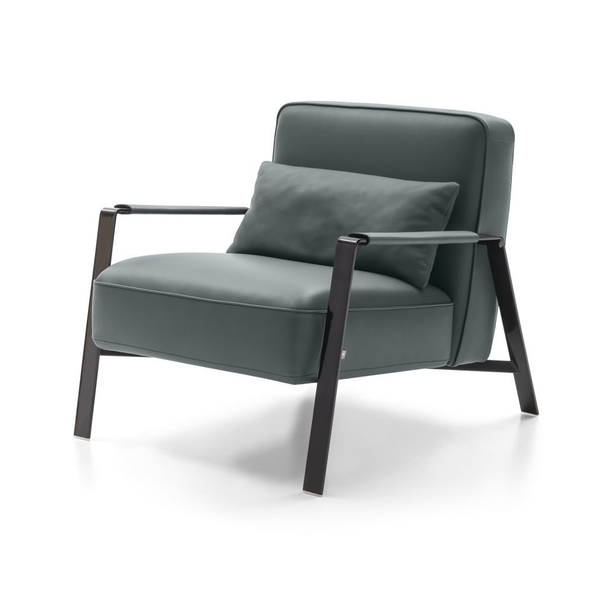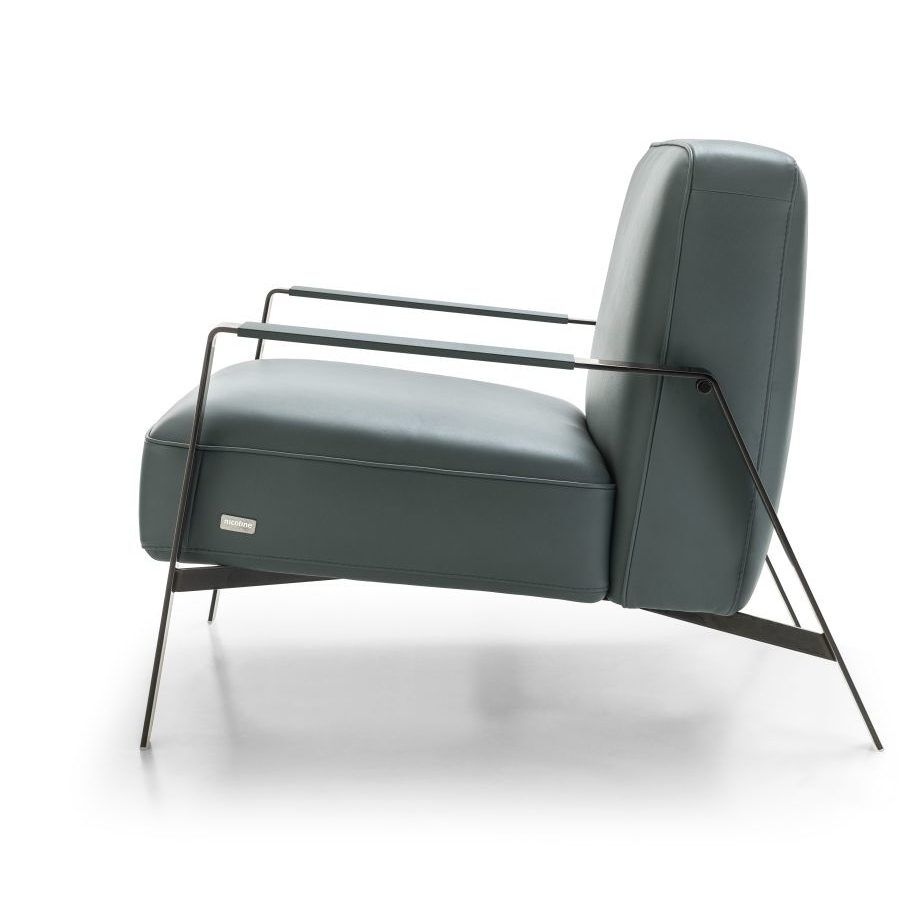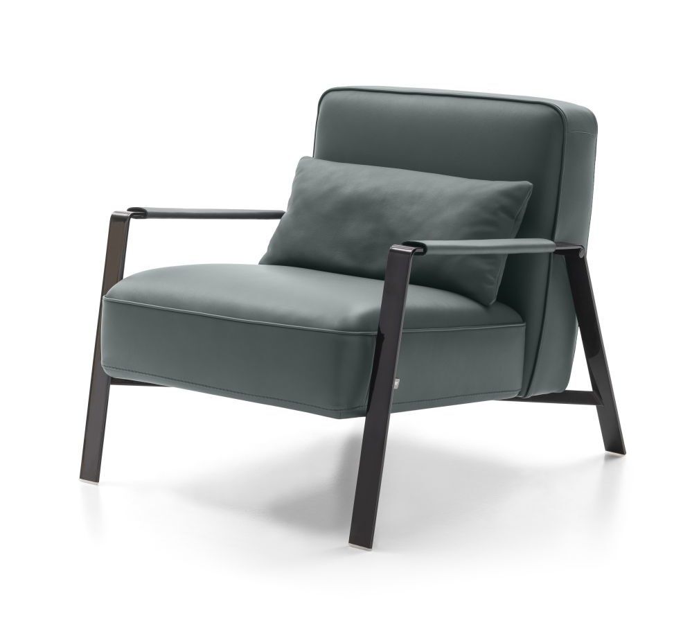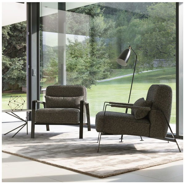 Fotel Rho firmy Nicoline Italia to wspaniały element wystroju w nowoczesnym salonie. Z lekko zakrzywionym tyłem i ukośnymi nogami sprzyja prawidłowej postawie, a miękka tapicerka i poduszka lędźwiowa zapewniają wygodę przez wiele godzin. Dzięki zastosowaniu kontrastujących materiałów tworzy żywe zestawienie. Misterne szwy pięknie oprawiają fotel, dodając mu uroku. Opcje tapicerki obejmują różne tkaniny i skóry, a szwy są w dopasowanych, jaśniejszych lub ciemniejszych kolorach. Metalowe nogi mają szereg wykończeń.