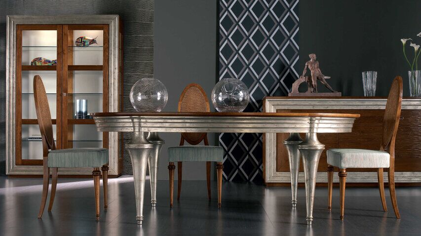Kolekcja Etoile jest inspirowana meblami neoklasycystycznymi i biedermeierowskimi, z efektownym, ale stonowanym wystrojem i inspirowaną architekturą z tamtego okresu. Każdy mebel oferuje wiele funkcjonalnych rozwiązań, doskonale współgrających ze złotymi i srebrnymi zdobieniami, które są nakładane ręcznie przy użyciu wiekowych włoskich technik. Silny kontrast kolorów między różnymi częściami każdego elementu i wiele dostępnych typów. Szlachetne drewno i wyeksponowane słoje silnie kontrastują z dekorowanymi sekcjami.