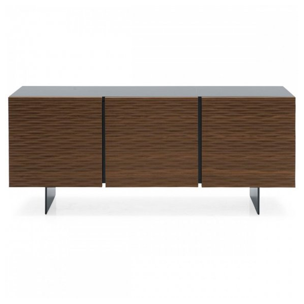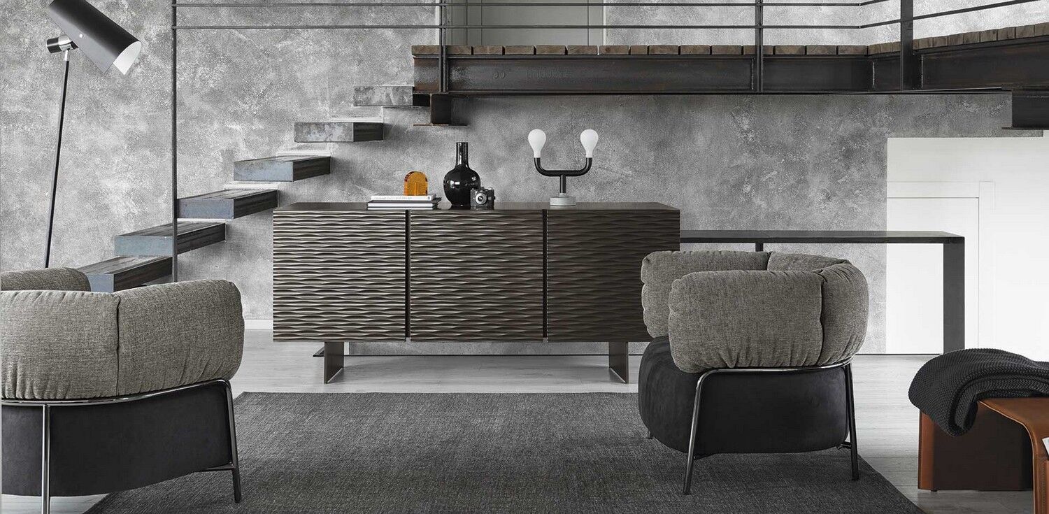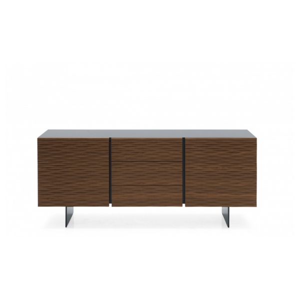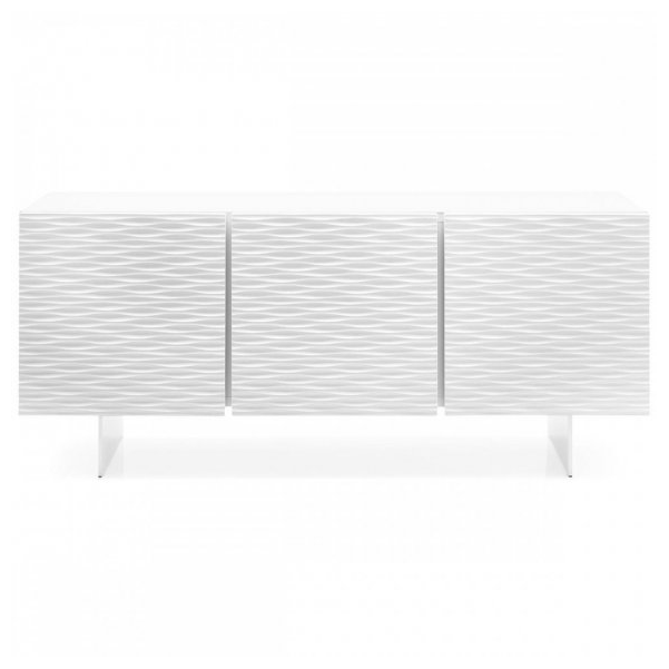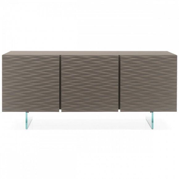 Komoda Opera z 3 przegrodami i 4 drzwiami. Wyczuwalny, dekoracyjny wygląd kredensów Opera z lakierowaną strukturą i drewnianymi drzwiami z efektem 3D. Z charakterystyczną metalową lub przezroczystą podstawą z tafli szklanej, która dodaje lekkości ramie, tworząc efekt zawieszenia. Drzwi bez uchwytów posiadają mechanizm otwierania z magnesem typu push-pull. Zawiera 2 wewnętrzne drewniane półki z możliwością wyboru 3 regulowanych wysokości.