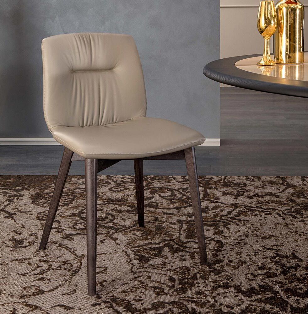 Wygodne, ale estetyczne krzesło Alexia stanowi wyraz nowoczesnego domu. Nogi dostępne są z wykończeniem metalowym i drewnianym, tapicerka dostępna jest w różnych wersjach z ekoskóry i skóry.