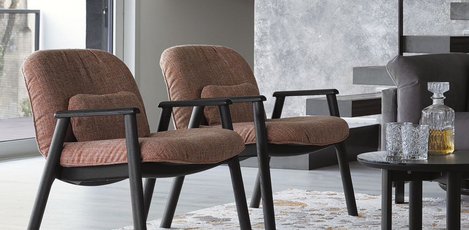 Rama krzesła Baltimora wykonana jest z drewna jesionowego, ma elegancki półeliptyczny wzór na nogach i podłokietnikach. Miękka tapicerka, która nadaje estetyczny przytulny wygląd, zawiera małą poduszkę podparcia lędźwi w dopasowanym pokrowcu i gwarantuje fotelowi Baltimora najwyższy komfort siedzenia.
