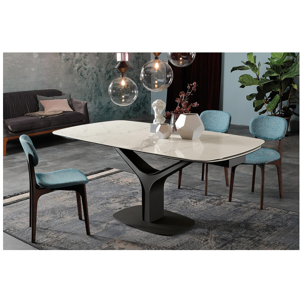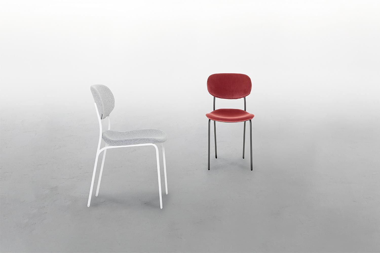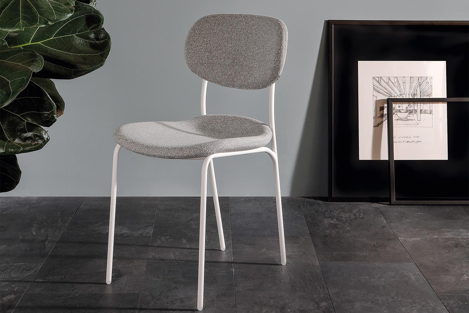 Mocna metalowa rama jest dostępna w różnych kolorach, a tapicerka jest dostępna w opcji ze skóry ekologicznej, skóry i tkaniny.