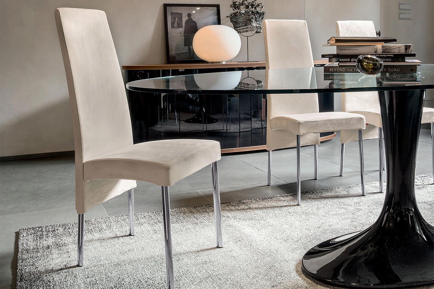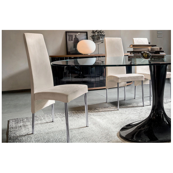 Krzesło Charonne dodaje efektownego stylu nowoczesnej jadalni. Wysokie oparcie wyróżnia krzesło, a lekkie wygięcie zapewnia wygodę i wsparcie podczas posiłków. Miękka i luksusowa tapicerka jest przyjemna w dotyku, a kontrast między nią, a błyszczącymi metalowymi nogami dodaje szyku. Dzięki temu, że tapicerka przechodzi obok siedzenia, krzesło Charonne jest urzekające. Dostępne są tapicerki z tkaniny, skóry i skóry ekologicznej, nogi mają różne metalowe wykończenia.