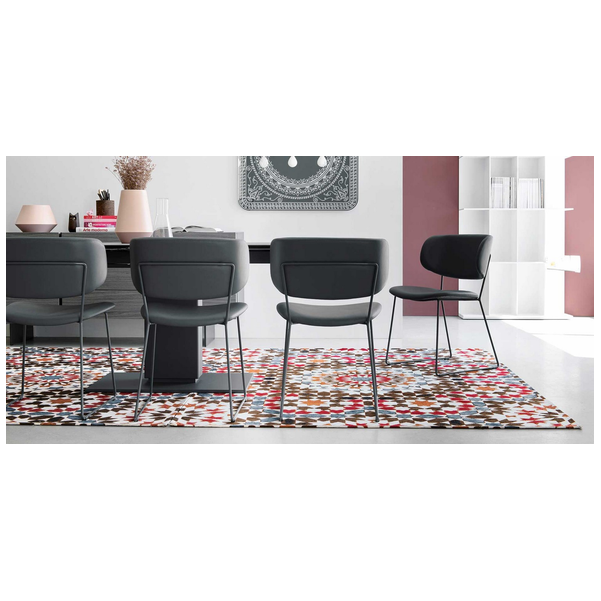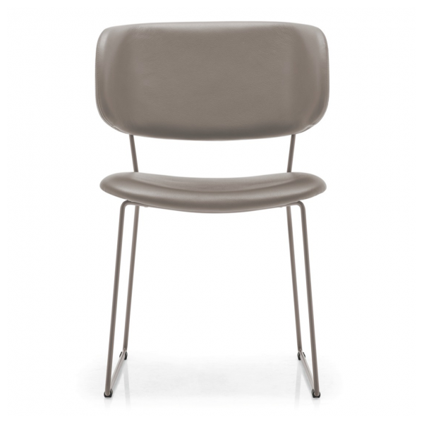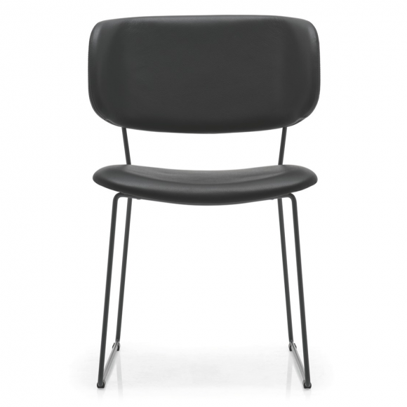- Metalowe krzesło z tapicerowanym siedziskiem i oparciem.