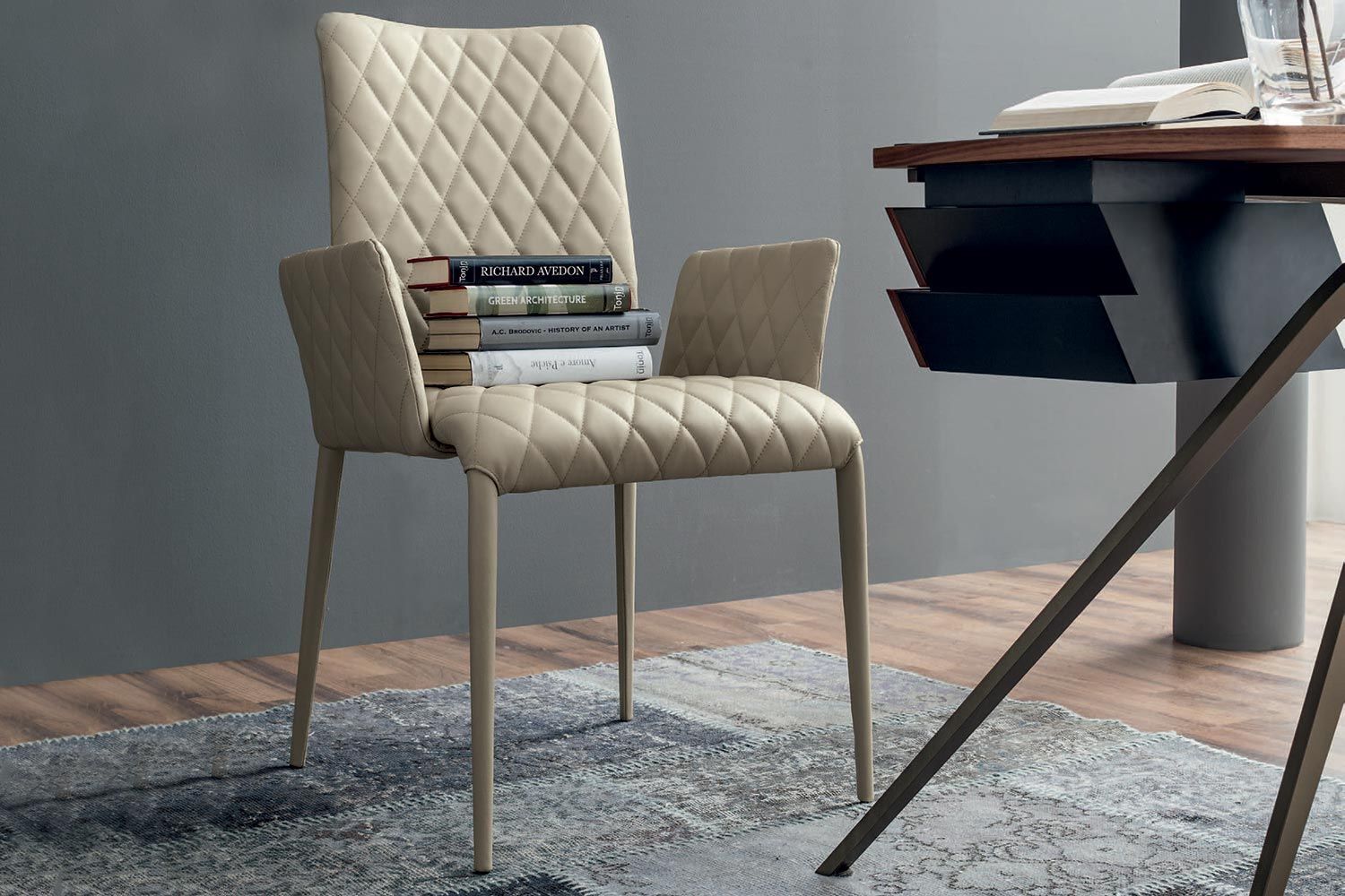 Krzesło, fotel do jadalni Kosmos marki Tonin Casa to gustowna opcja do nowoczesnej jadalni. Minimalistyczny design i kontrast między siedziskiem a nogami stanowią elegancki element. Miękka i luksusowa wyściełana tapicerka zapewnia wygodę podczas posiłków, a lekko odchylony tył zapewnia ergonomiczne wsparcie. Połącz z szeregiem stołów do jadalni Tonin Casa, aby stworzyć spójną koncepcję projektową. Dostępne są różne opcje tapicerki z tkaniny, skóry i skóry ekologicznej, a nogi mogą być dopasowane do siedziska lub być wykończone w wielu metalowych opcjach. Wybierz wersję standardową lub pikowaną.