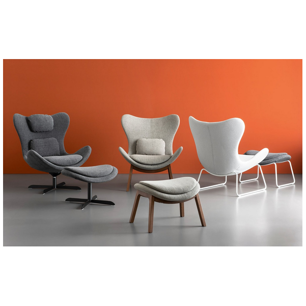 Lazy to fotel o falistych liniach i szerokim, przytulnym siedzisku, dzięki czemu jest idealnym towarzyszem chwil relaksu. Miękka poduszka siedziska i podparcia lędźwi, która doskonale dopasowuje się do spienionego na zimno poliuretanu, sprawia, że fotel jest niezwykle wygodny. Wersja Lazy z powlekaną metalową podstawą doskonale nadaje się do użytku domowego i kontraktowego.