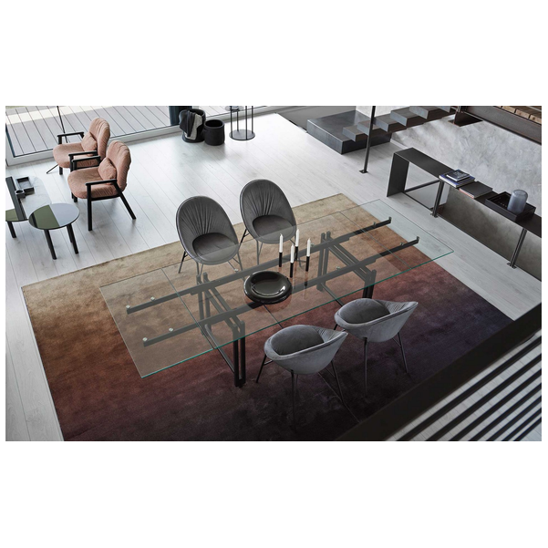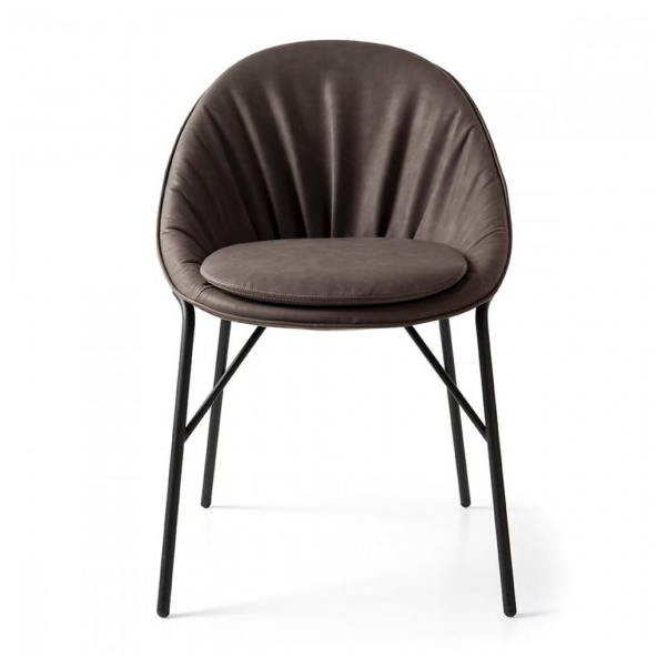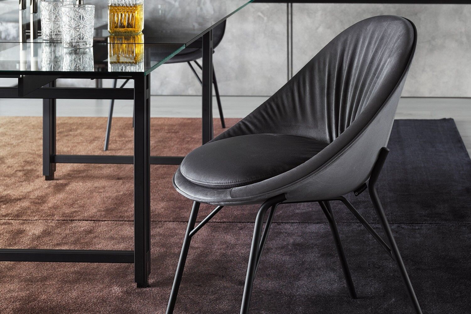 Otulające, płynne i zmysłowe linie dla Lilly, stylowego krzesła miękkości. Siedzisko o zaokrąglonych kształtach i miękkiej wyściółce jest wsparte smukłą metalową ramą. Zintegrowana poduszka, dopasowana do siedziska, zapewnia najwyższy komfort.