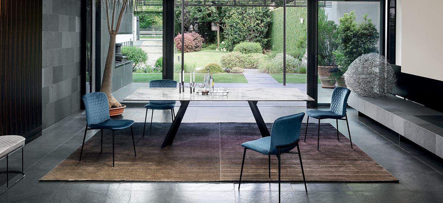 Love jest częścią nowej serii wyściełanych krzeseł o delikatnie wyrzeźbionej sylwetce i nieco vintage'owym klimacie. Charakterystycznym detalem łączącym wszystkie elementy kolekcji jest element na oparciu, który jest eleganckim przedłużeniem metalowych nóg. Ten uderzająco stylowy element świadczy o niekonwencjonalnym wzornictwie między siedziskiem z tkaniny, a ramą nośną. Jego miękka wyściółka i wyrafinowane detale na metalowej ramie sprawiają, że krzesło Love staje się luksusem na co dzień.