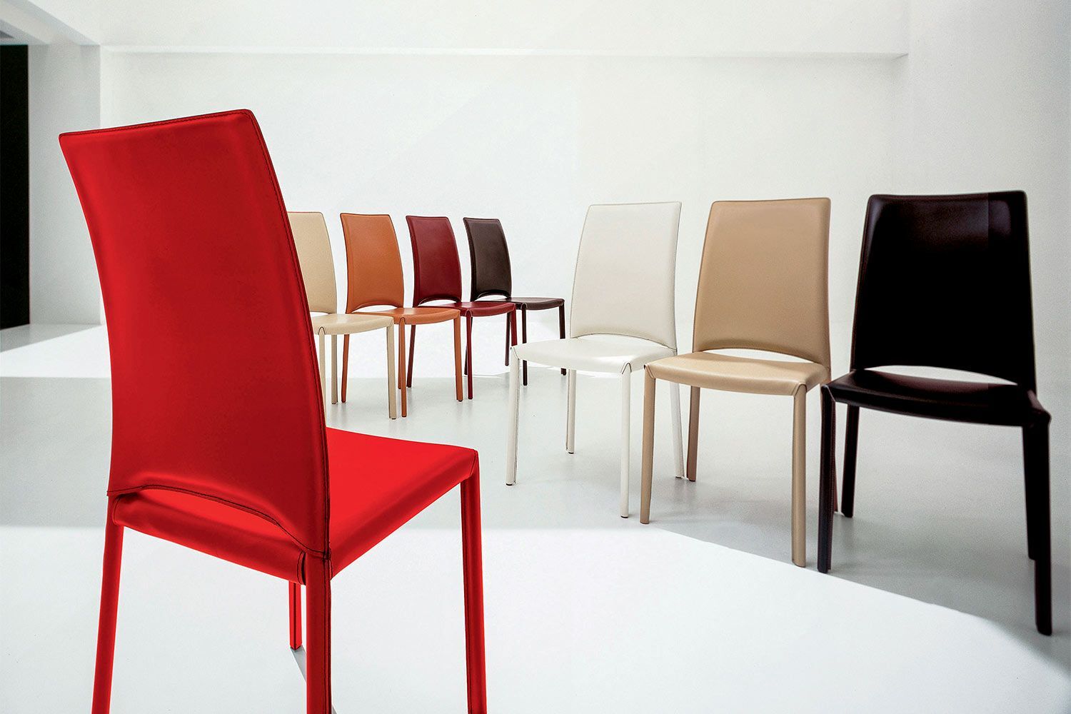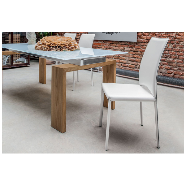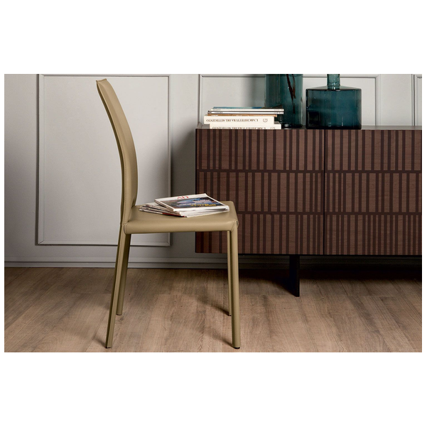 Madeleine to wygodne i wyrafinowane rozwiązanie do siedzenia we współczesnej kuchni lub jadalni. Z lekko zakrzywionym oparciem i pochylonymi nogami, krzesło pozwala wygodnie odchylić się do tyłu i zapewnia ergonomiczne podparcie. Luksusowa i miękka tapicerka jest przyjemna w dotyku. Połącz go z różnymi dużymi stołami do jadalni Tonin Casa, aby uzyskać spójny, stylowy wygląd. Tapicerka ma do wyboru różne opcje twardej skóry, a przeszycie i lamówka mogą być dopasowane do materiału lub w kontrastowym kolorze. Madeleine występuje również jako fotel.