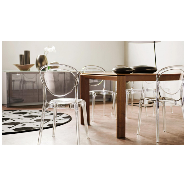 Krzesło monoblokowe Parisienne, w całości wykonane z poliwęglanu, do ustawiania w stosy do czterech krzeseł, nadaje się również do użytku zewnętrznego. Krzesło charakteryzuje się zaokrąglonymi kształtami i brakiem ostrych krawędzi, co przywołuje delikatny styl klasycznych francuskich krzeseł bistro z początku XX wieku. Wykonany z poliwęglanu, materiału zapewniającego doskonałą odporność na wstrząsy i warunki atmosferyczne, jest bardzo lekkie i łatwe do przenoszenia. Niezwykle funkcjonalne, o niepowtarzalnym designie, jest idealnym krzesłem do dekoracji kuchni, baru czy części wspólnych na zewnątrz. Dostępne w różnych wykończeniach, błyszczące lub przezroczyste.
