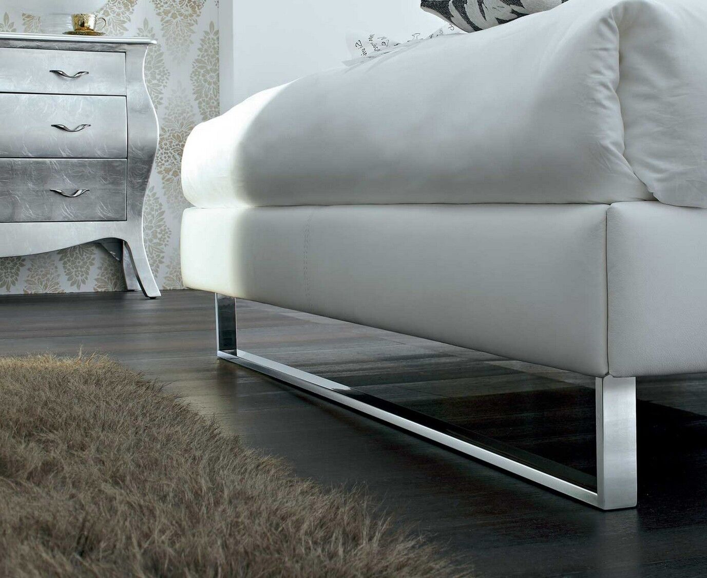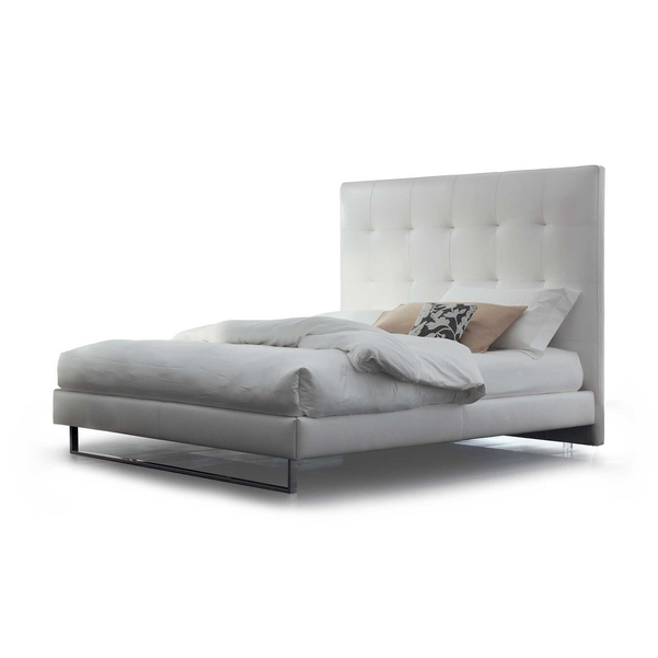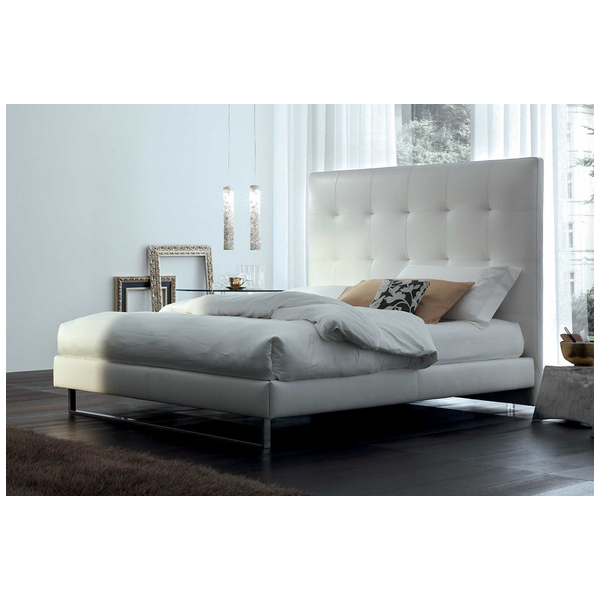 Elite, łóżko marzeń: na pierwszy rzut oka imponujące pikowane wezgłowie i staranne detale, takie jak przednia podstawa z jasnego metalu i tylne nogi z pleksiglasu.