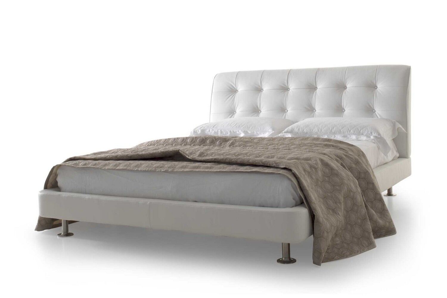 Miękkie i przytulne linie. Zagłówek charakteryzuje się wyrafinowanym konturem, który podkreśla elegancki kształt, wzbogacony delikatną tapicerką w nowoczesnym procesie pikowania z małymi guzikami. Geo to łóżko o dokładnej, zasadniczej prostocie, zdolne do wyrażenia silnego poczucia komfortu.