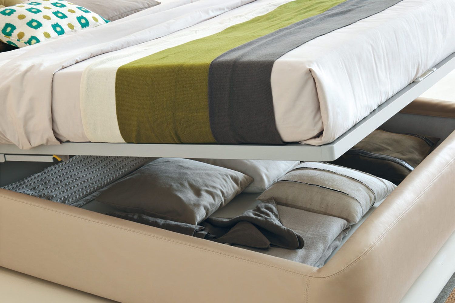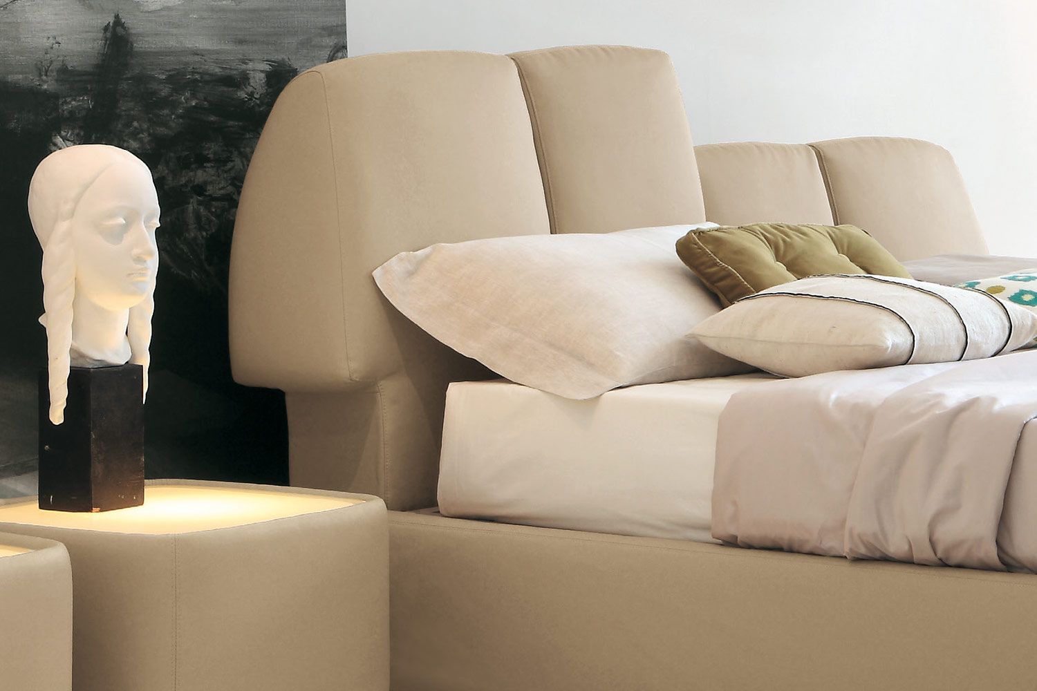 Łózko Tuny łączy w sobie siłę, czystość i harmonię: zagłówek, podzielony na cztery różne sekcje, tworzy jedyną w swoim rodzaju geometrię. Pokryte jest skórą, ekoskórą lub tkaniną z impregnacją wodoodporną, odporną na plamy.