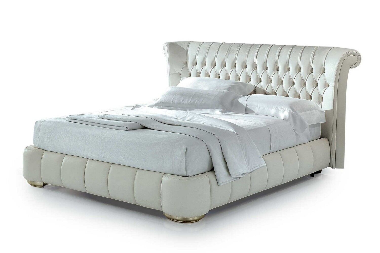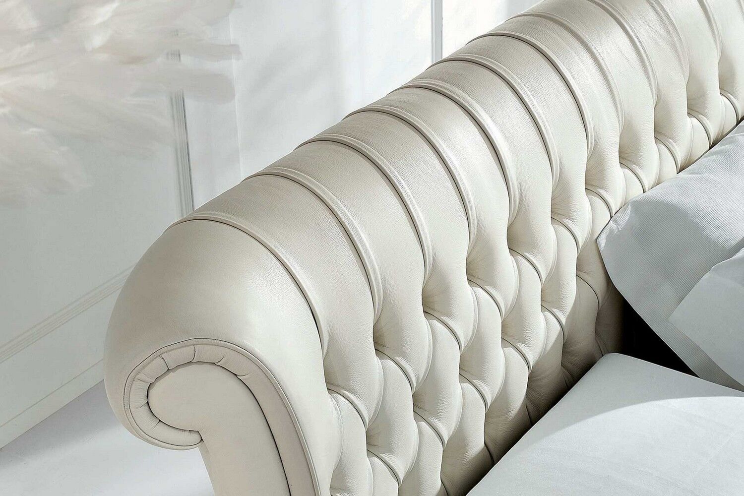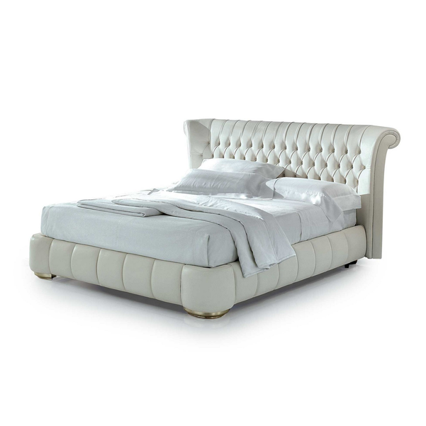 Luksus wkracza do sypialni z łóżkiem Windsor w stylu retro. Cechy szczególne tego modelu to tapicerowane wezgłowie, rama pokryta pikowaną skórą. Łóżko można łączyć z dopasowanym podnóżkiem, który w połączeniu z drewnianym blatem może służyć jako elegancki stolik nocny.