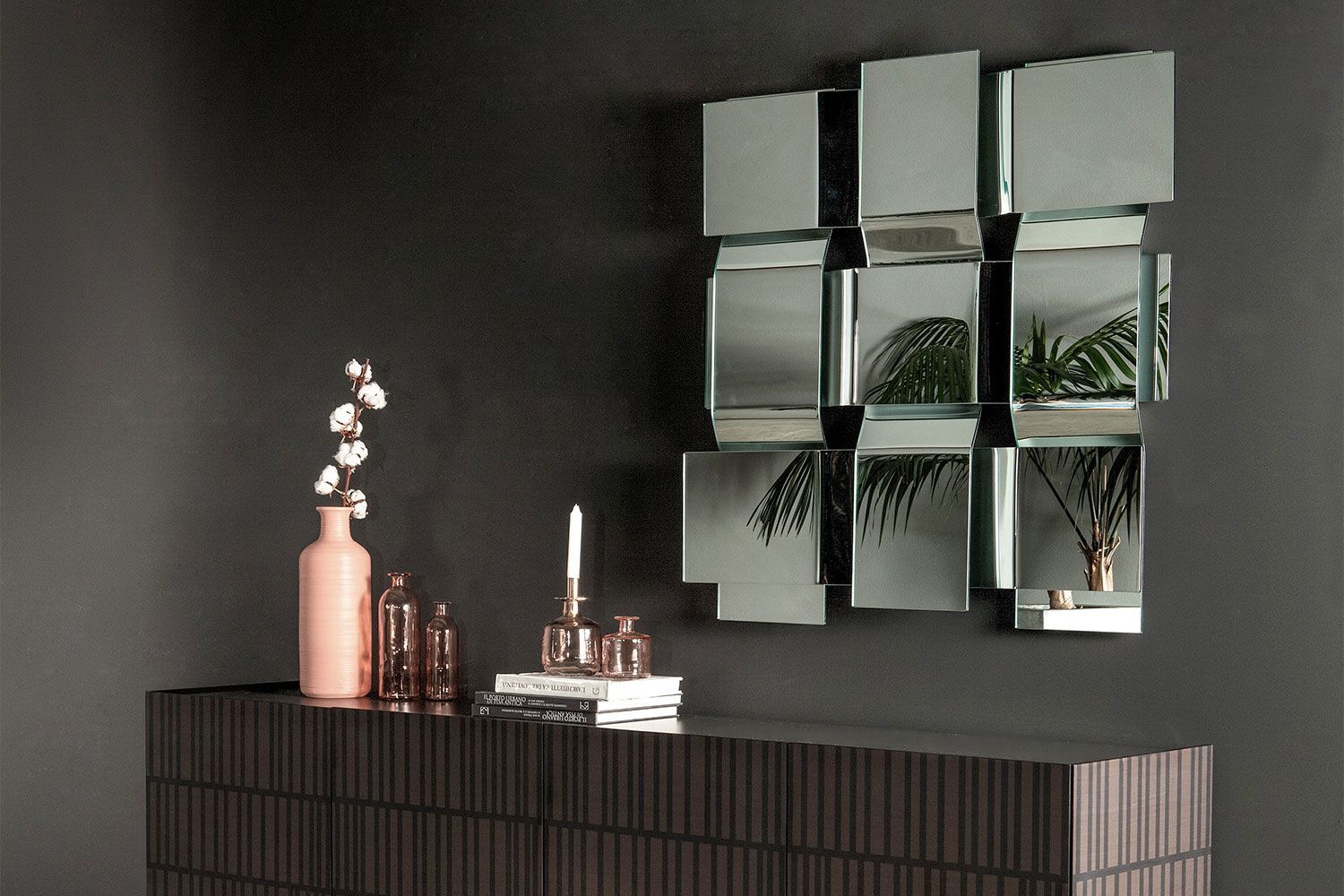 Lustro Trama dodaje wyrazistości nowoczesnemu domowi. Wzór splotu koszykowego przyciąga wzrok, dzięki czemu jest to odważna dekoracja ścienna. Dzięki wielowymiarowemu efektowi lustro jest wyjątkowe i natychmiast podnosi styl pomieszczenia. Posiada srebrne lustrzane wykończenie.