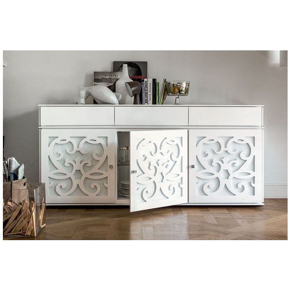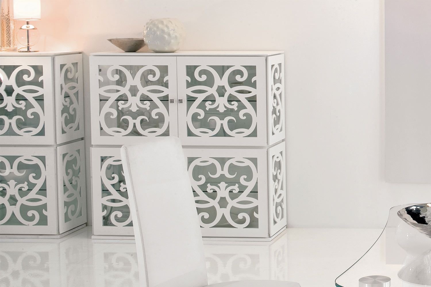 Dodaj wyrafinowany styl do swojego nowoczesnego domu, dzięki niezwykłemu kredensowi Paris marki Tonin Casa. Mnóstwo miejsca w każdej szafce sprawia, że wszystkie Twoje rzeczy są ukryte i uporządkowane. Niesamowita dbałość producenta o szczegóły zapewnia trwałość na długi czas. Paris jest częścią luksusowej kolekcji Paris. Struktura jest dostępna w różnych matowych wykończeniach, drzwi wyposażone są w różne opcje szkła.