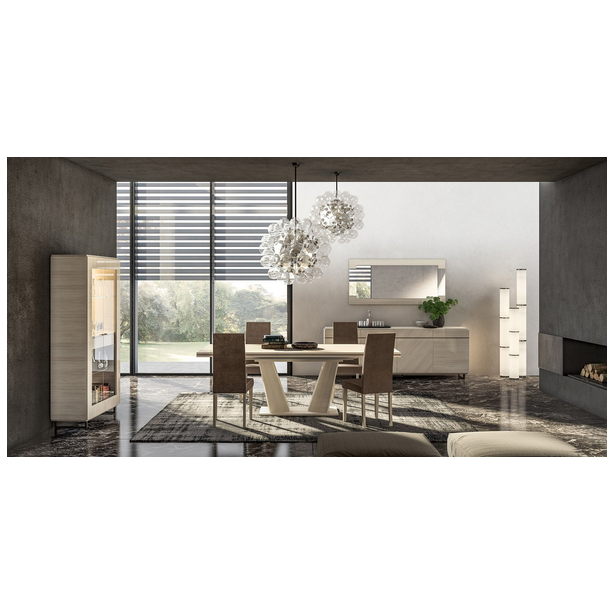 Perla to kolejne arcydzieło, które jest nowością we współczesnym meblarstwie. Pierwotna decyzja projektantów umożliwiła, przy użyciu innowacyjnych i wysokiej jakości materiałów, stworzenie kolekcji jasnej, przemyślanej w najmniejszym szczególe. Jego walory funkcjonalne i estetyczne przypadną do gustu tym, którzy żyją z duchem czasu, cenią niebanalne rozwiązania projektowe i doskonałą jakość. Kolekcja wykonana jest z materiału imitującego biały dąb, pokrytego kilkoma warstwami błyszczących lakierów. Uzupełnieniem mebli jest przezroczyste szkło hartowane, lustra, wbudowane oświetlenie, metalowe podstawy. Do obicia krzeseł wybieramy ekoskórę i mikrofibrę.