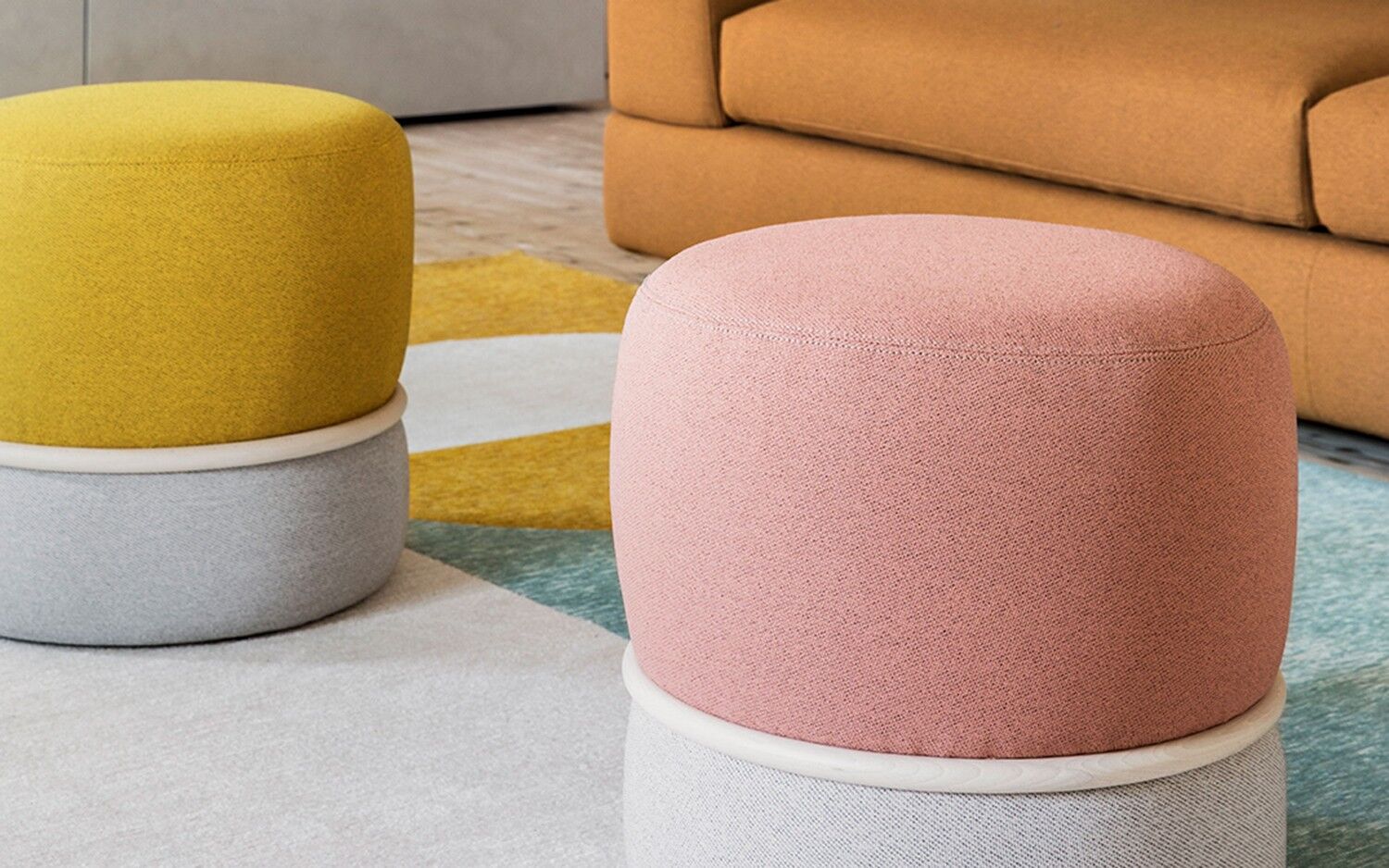 Podnóżek Anell został zaprojektowany i stworzony z myślą o uzupełnieniu otoczenia dziennego i stref relaksu. Wyściełany poliuretanem i tapicerowany tkaniną, otoczony jest drewnianym pierścieniem, który podkreśla jego kształt i uwydatnia różne dwukolorowe kombinacje tapicerowanej powierzchni. Podnóżek ma sztywną podstawę i cztery chowane nóżki.