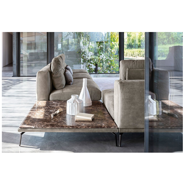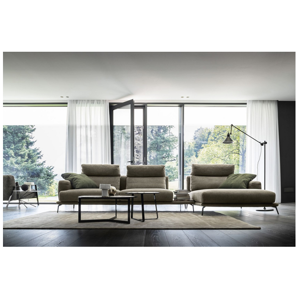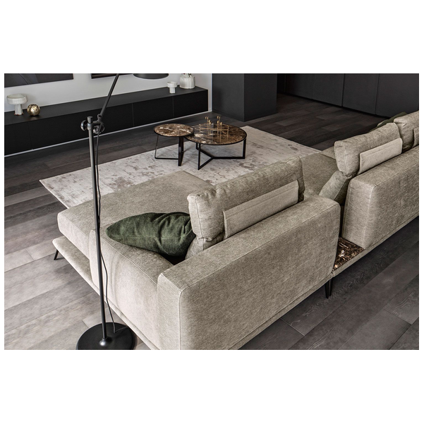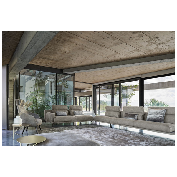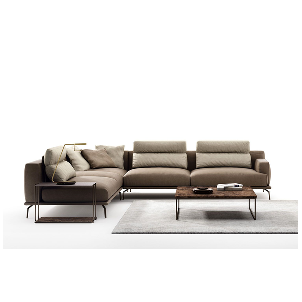 Idealna w każdym ustawieniu, sofa Babila ma sztywną konstrukcję, przerywaną miękkimi liniami lekko pochylonych poduch oparciowych i zagłówków. Pełna wygodnych funkcji sofa to jedyny w swoim rodzaju produkt ze zintegrowanym stolikiem bocznym między dwiema poduszkami i wygodnym szezlongiem. Dzięki miękkiej tapicerce i amortyzującej wyściółce zapewnia wygodę przez wiele godzin. Dostępna w wersji ze skóry i tkaniny.