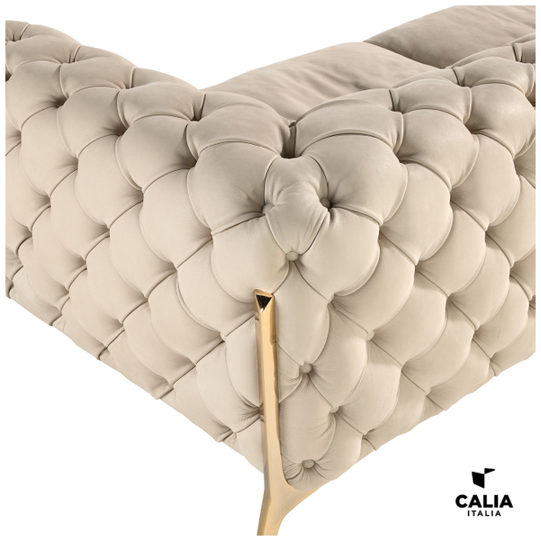Z doświadczenia i umiejętności krawieckich mistrzów Calia Italia wywodzi się obróbka capitonné, która obejmuje sofę, z wyjątkiem siedziska ozdobionego ozdobną obwódką. Belle Epoque wyróżnia się również nowoczesnym i wyrafinowanym designem stóp zaprojektowanych ad hoc dla tego modelu. Wyrafinowana sofa, miłośniczka namiętnych rozmów, która wita w całej swojej elegancji, dając doskonały komfort w każdym szczególe. Wypełnienie poduszek do siedzenia: mieszanka piór ze wzmocnieniem z pianki poliuretanowej.