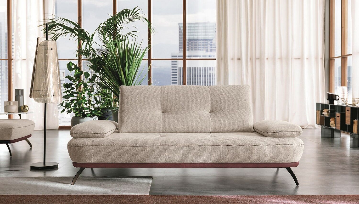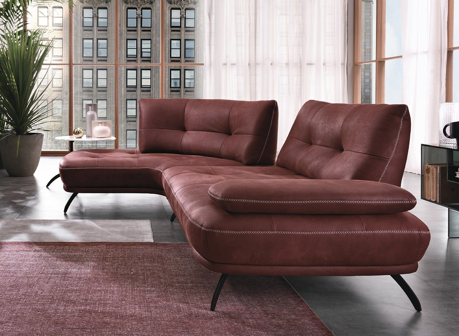 Bogata w detale sofa Bogart, od pikowania siedziska i oparcia po dwukolorową podstawę, ważną rzeczą jest wykończenie specjalnym szwem X, który charakteryzuje cały model. Wyściółka z pianki poliuretanowej o różnej gęstości, dostępna w wersji ze skóry i tkaniny, z wykończeniem metalowej stopy.