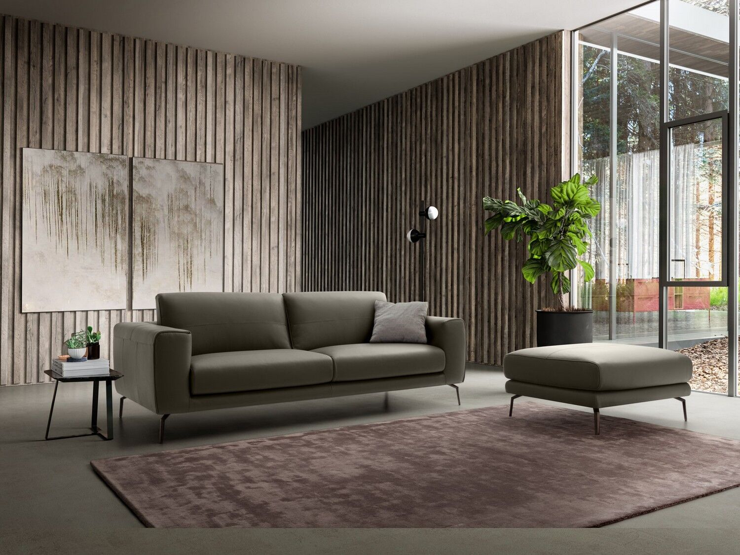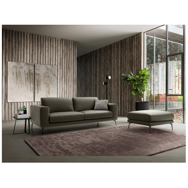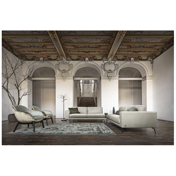 Minimalistyczna sylwetka nadaje pomieszczeniu ponadczasowego wyglądu i dobrze komponuje się z resztą współczesnych mebli. Dzięki misternym przeszyciom na podłokietnikach i poduszkach tworzy wzór w paski, który przyciąga wzrok. Luksusowo miękka tapicerka i wyściełana wyściółka zapewniają komfort przez wiele godzin, co czyni go jednym z najlepszych siedzeń w domu. Dostępna w wersji ze skóry i tkaniny.