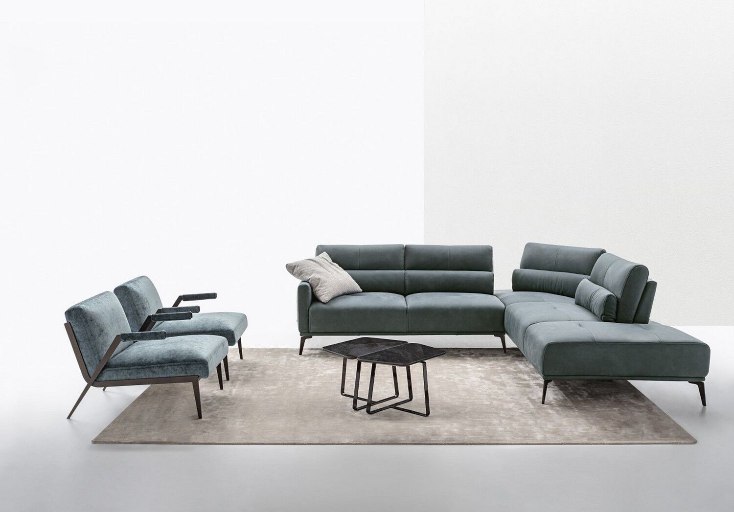 Praktyczny narożnik Canarie firmy Nicoline Italia robi imponujące wrażenie w nowoczesnym salonie. Ukośna poduszka w rogu uzupełnia proste poduszki po obu stronach, zapewniając urzekający dotyk. Dzięki ruchomym poduszkom oparcia w kilka sekund tworzy głębsze i wygodniejsze siedzisko. Dzięki misternym przeszyciom i kontrastującym materiałom sofa błyskawicznie poprawia wygląd otoczenia. Występuje w dwóch rozmiarach w konfiguracji lewej i prawej, a nogi są wykończone w wielu metalowych opcjach. Wybieraj spośród różnych tkanin i skór na tapicerkę, a szwy mogą mieć pasujący, jaśniejszy lub ciemniejszy kolor.