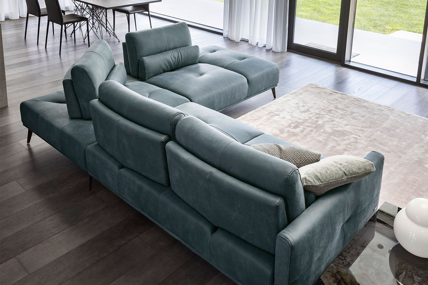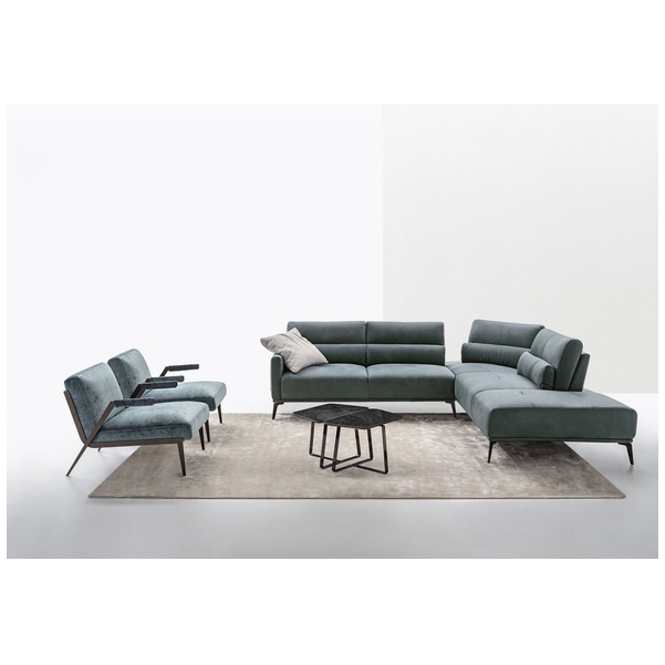 Sofa segmentowa Canarie z szezlongiem firmy Nicoline Italia płynnie łączy wygodę ze stylem, tworząc jedyne w swoim rodzaju rozwiązanie do siedzenia. Ruchome poduszki oparcia z łatwością przesuwają się do tyłu, tworząc głębsze i przytulniejsze siedzisko, a część szezlonga zapewnia dużo miejsca na rozciągnięcie się i odpoczynek. Dzięki misternym przeszyciom na poduszkach i na krawędziach sofa ma szykowny wygląd i robi wrażenie w pomieszczeniu. Dzięki wysokiej jakości konstrukcji sofa będzie stałym elementem wyposażenia na pokolenia. Wyprodukowana we Włoszech z niezwykłą dbałością o szczegóły, sofa segmentowa Canarie z szezlongiem jest dostępna w dwóch rozmiarach oraz w konfiguracji lewej i prawej. Wybierz między różnymi opcjami tapicerki z tkaniny i skóry, a także dopasowanymi, jaśniejszymi lub ciemniejszymi przeszyciami. Nogi mają różne metalowe wykończenia.