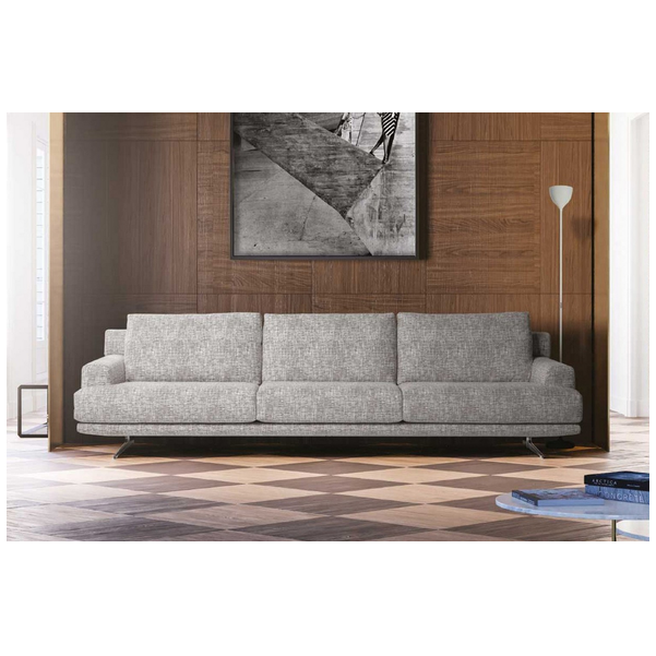 Formalna lekkość, która charakteryzuje Cosmo, pochodzi z połączenia zrównoważonych objętości i podstawy wspartej na eleganckich nóżkach z polerowanego metalu lub brązu, które podnoszą sofę o 15 cm od podłogi. Cosmo to model o surowym charakterze i wyrafinowanym stylu, który dzięki pierzastym oparciom i dużym siedzeniom zapewnia autentyczny komfort. Ekologiczna pianka poliuretanowa i arkusz z pianki memory, pokryty warstwą 100% poliestru, podszyty włókniną.