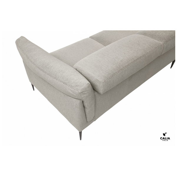 Piękno Elisir wynika z kontrastu: miękkie kształty, które charakteryzują sofę, spoczywają na cienkich i rygorystycznych nóżkach z kolcami, a szczególne ozdobne szwy podkreślają linię modelu, podkreślając jego design. Elisir to sofa, którą można podziwiać, ale skrywa sekret, który czyni ją wyjątkową: mechanizm umieszczony wewnątrz oparcia pozwala na zwiększenie jego wysokości, przemieniając elegancję w komfort. Poduszki siedziska z ekologicznej pianki poliuretanowej i arkusza z pianki memory, pokryte warstwą 100% poliestru.
