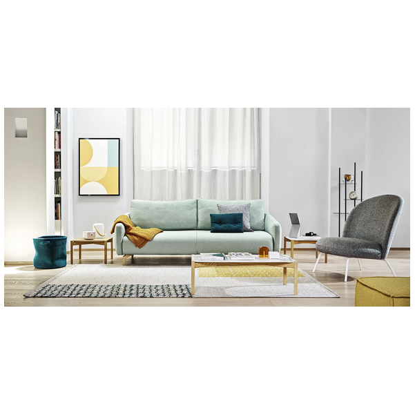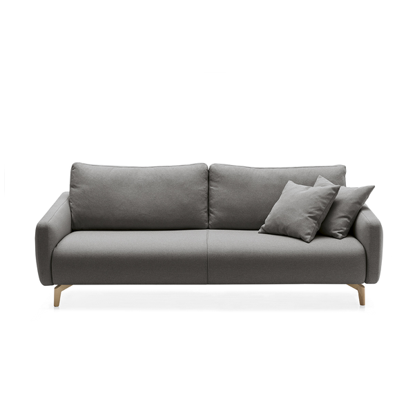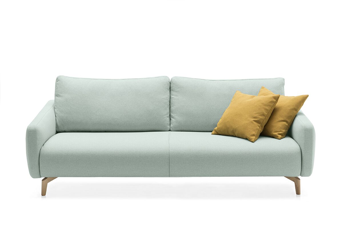 Sofa Finland to minimalistyczny i elegancki design inspirowany stylem skandynawskim, wizualnie lekki dzięki cienkim drewnianym nóżkom, które unoszą ją nad ziemię. Duże poduszki do siedzenia i małe poduszki dekoracyjne zapewniają zrównoważoną ogólną estetykę i duży komfort. Finland jest dostępna zarówno w wersji stałej, jak iz kilkoma pojedynczymi kompozycjami, w tym szezlongiem, otomaną i otwartą częścią wypoczynkową. Lekko vintage sofa, która wchodzi do salonu, tworząc atmosferę i personalizując pomieszczenie.