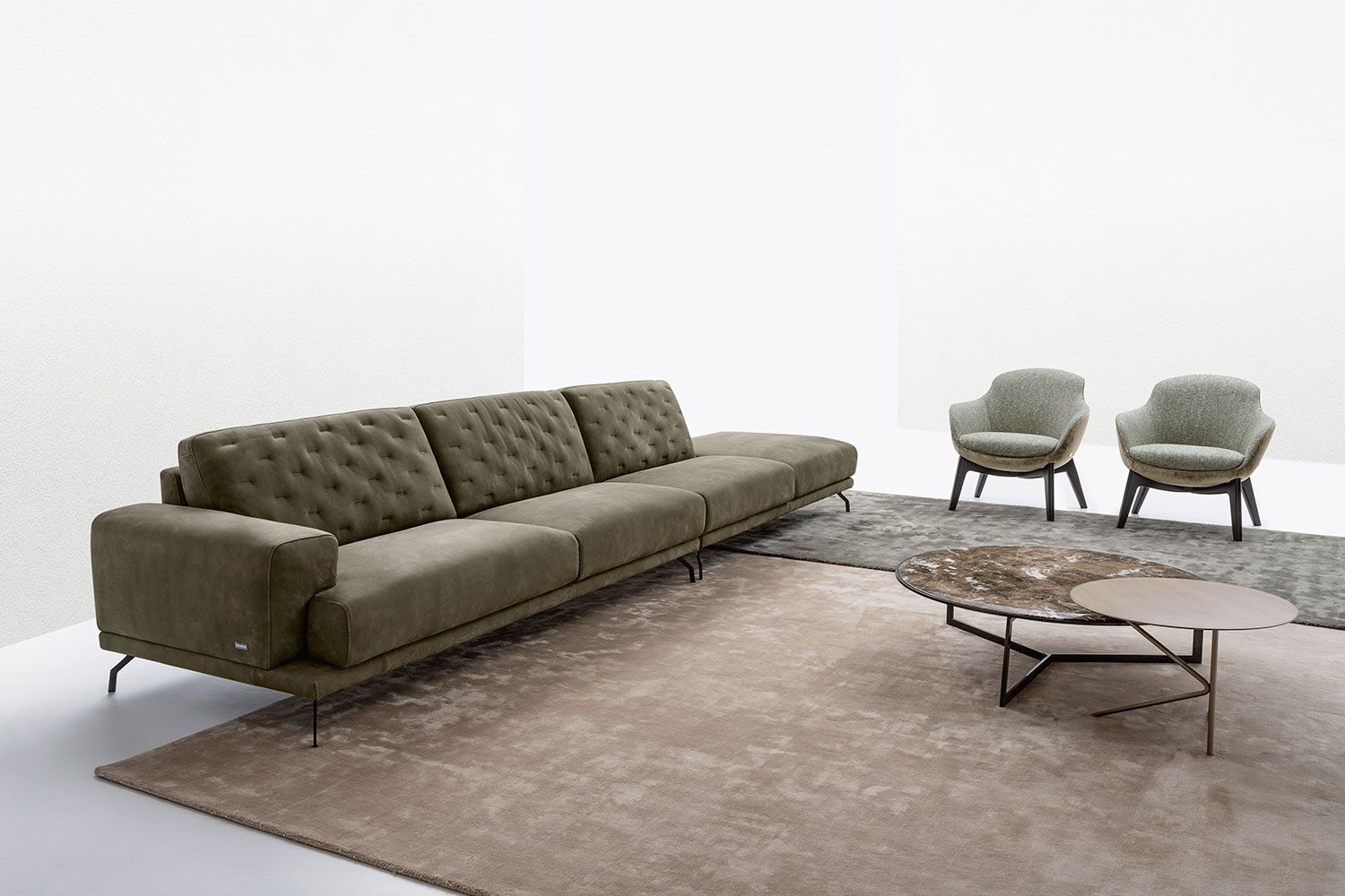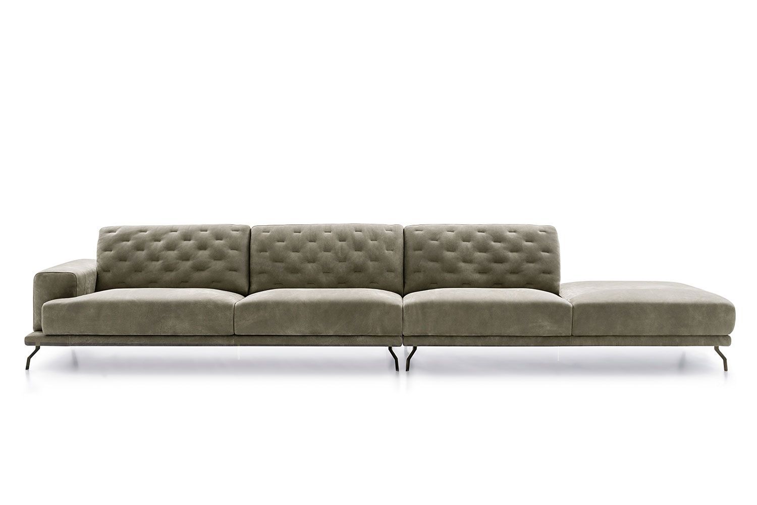 Sofa Gerba to wspaniały mebel, który będzie elementem wyposażenia nowoczesnego domu. Sylwetka nadaje pomieszczeniu odważnego stylu i jest niezwykle szczegółowa, dzięki liniowemu wzorowi szwów. Dzięki amortyzującej wyściółce i miękkiej tapicerce będzie jednym z najwygodniejszych siedzeń w domu. Jest wystarczająco dużo miejsca, aby z łatwością pomieścić wiele osób i pozwala rozciągnąć się na dużym półwyspie. Wyprodukowana we Włoszech z niesamowitą dbałością o szczegóły, sofa Gerba jest dostępna w wielu rozmiarach oraz w konfiguracji lewej i prawej. Wybierz jedną z wielu opcji tapicerki z tkaniny i skóry, a szwy będą dostępne w dopasowanych, jaśniejszych lub ciemniejszych kolorach. Nogi są dostępne w różnych kolorach metalu.