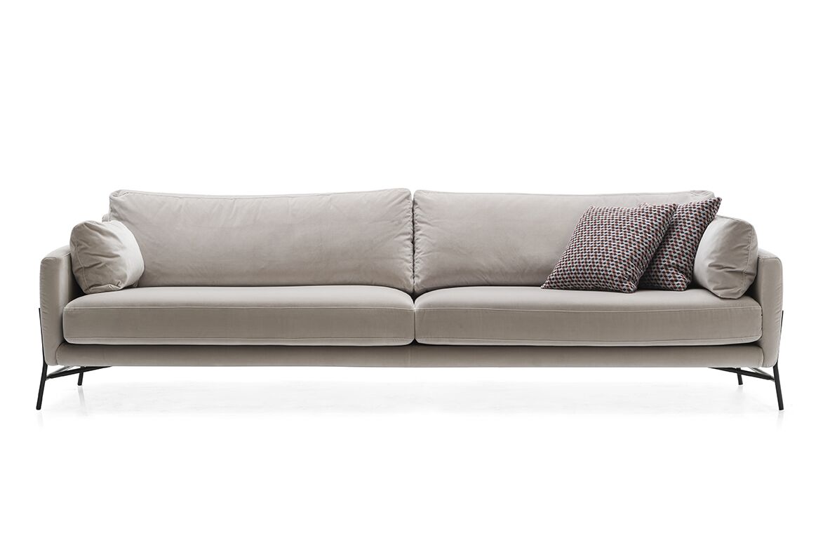 Nowoczesną i przyjemnie prostą sofę Le Marais można z łatwością wkomponować zarówno w pokoje tradycyjne, jak i współczesne. Elegancka i cienka metalowa rama dodaje dynamiki poduszkom siedziska i oparcia, które zapewniają naturalną miękkość i elastyczność. Cienkie podłokietniki dopełniają małe poduszki. Le Marais jest wszechstronny, przytulny i oferuje prawdziwą swobodę w projektowaniu dzięki wielu dostępnym elementom: stałym sofom, środkowym elementom w różnych wymiarach, szezlongowi, otomanie.