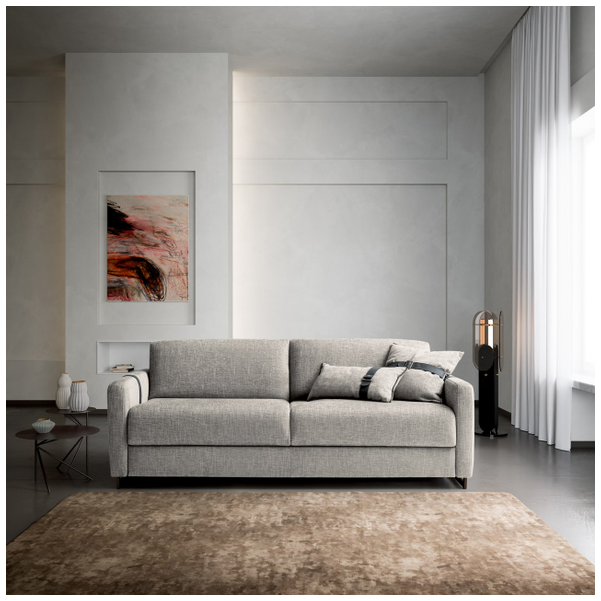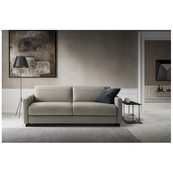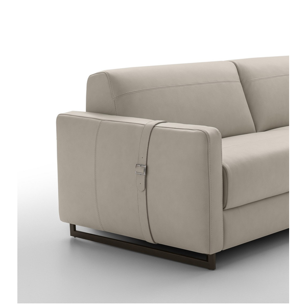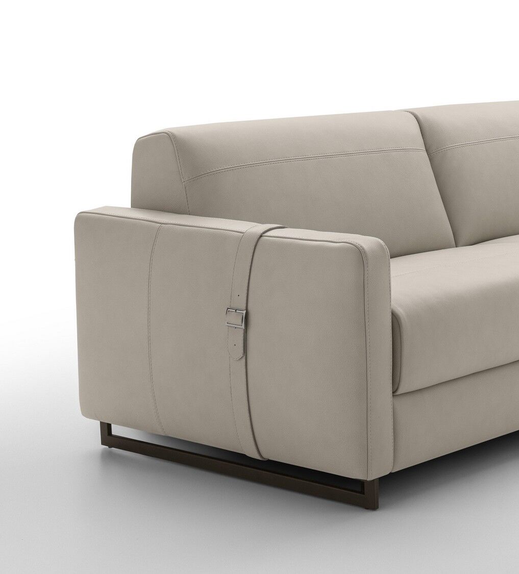 Usiądź, rozluźnij się lub połóż się i wyśpij dobrze na eleganckiej i praktycznej sofie Maya firmy Nicoline Italia. Sofa łatwo przekształca się w łóżko, po prostu rozkładając oparcie i poduszki siedziska, które składają się pod materacem, co jest idealne do miejsc, w których brakuje miejsca. Przyciągające wzrok sprzączki dodają jej stylowego akcentu, który sprawia, że sofa jest wspaniałym centralnym punktem. Dzięki miękkiej tapicerce i wyściełanej wyściółce zarówno na poduszkach sofy, jak i na materacu, sofa zapewnia wygodę i wsparcie przez wiele godzin. Maya dostępna jest w dwóch rozmiarach, aby zaspokoić indywidualne potrzeby. Dostępne są opcje tapicerki materiałowej i skórzanej, a także dopasowane, jaśniejsze lub ciemniejsze szwy. Nogi są dostępne w wielu metalowych opcjach.