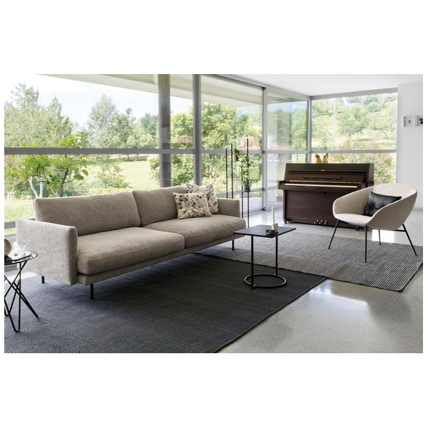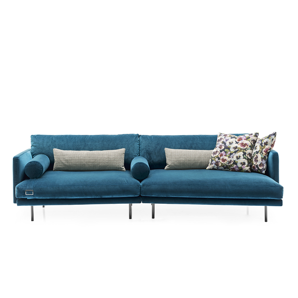 Współczesny styl i najwyższy komfort, ta stała lub modułowa sofa Mies ma głębokie, zachęcające poduszki do siedzenia, które zachęcają do relaksu i zatopienia się w komforcie. Główną cechą tej sofy jest możliwość personalizacji zarówno opcjonalnych okrągłych zagłówków z metalowymi klamrami, jak i poduszek oparcia z dowolną tkaniną z kolekcji. Sofa Mies jest nieskończenie wygodna.
