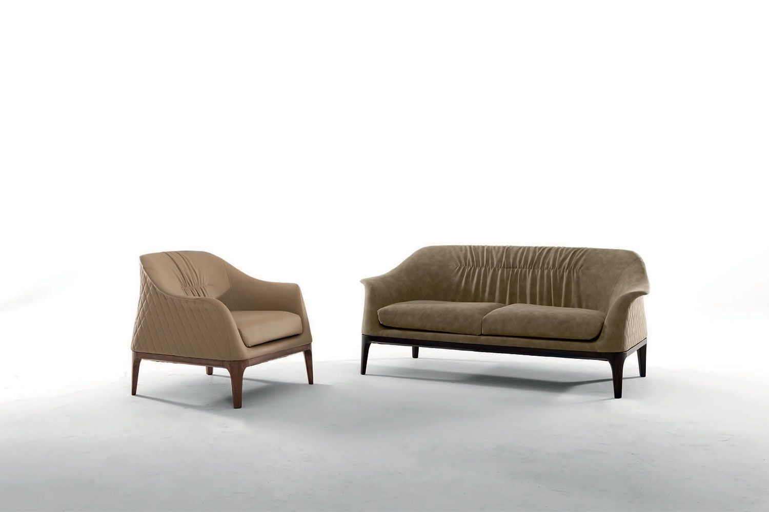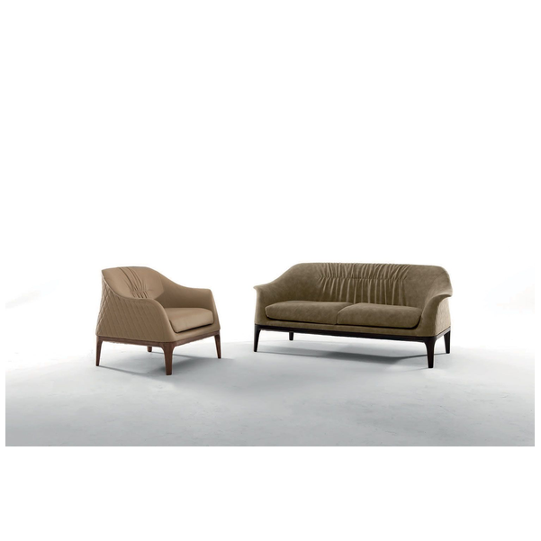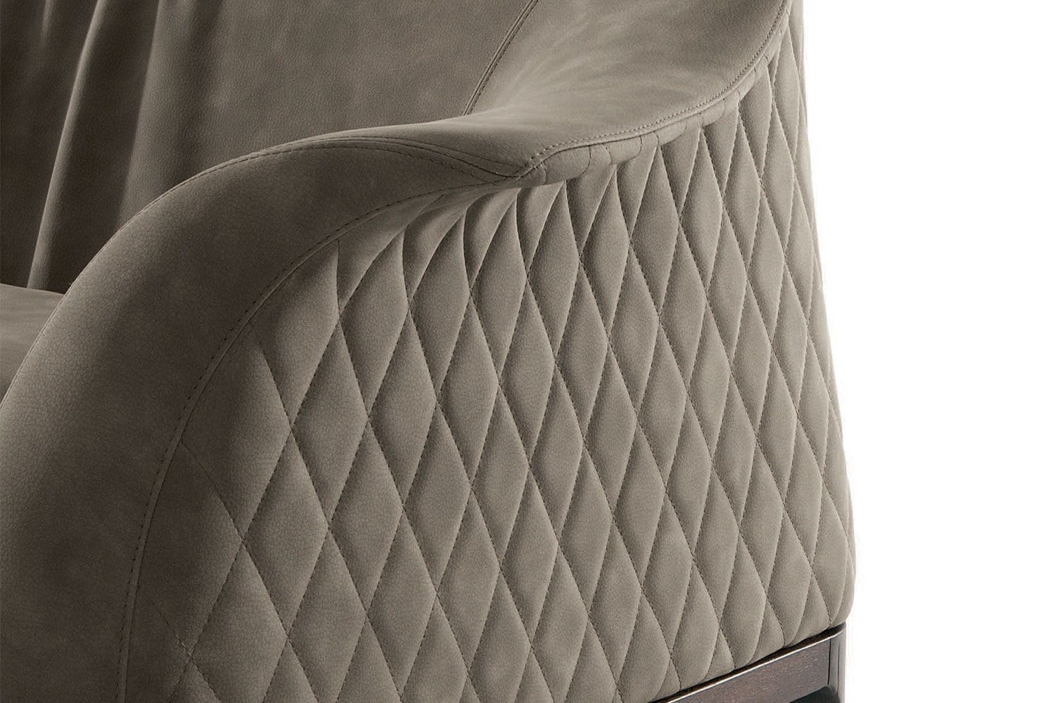 Elegancka i wyrafinowana sofa i fotel Tiffany marki Tonin Casa natychmiast podnoszą styl nowoczesnego salonu. Szwy w romby dodają szykownego charakteru i sprawiają, że sofa jest pięknym centralnym punktem, który dobrze komponuje się z resztą współczesnych mebli w pokoju. Dzięki poduszkom z poliuretanu i pierza sofa Tiffany jest nie tylko estetyczna, ale także wygodna. Personalizacja jest łatwa, dzięki możliwości wyboru między tapicerką skórzaną i ekoskórą oraz różnymi drewnianymi wykończeniami nóg.