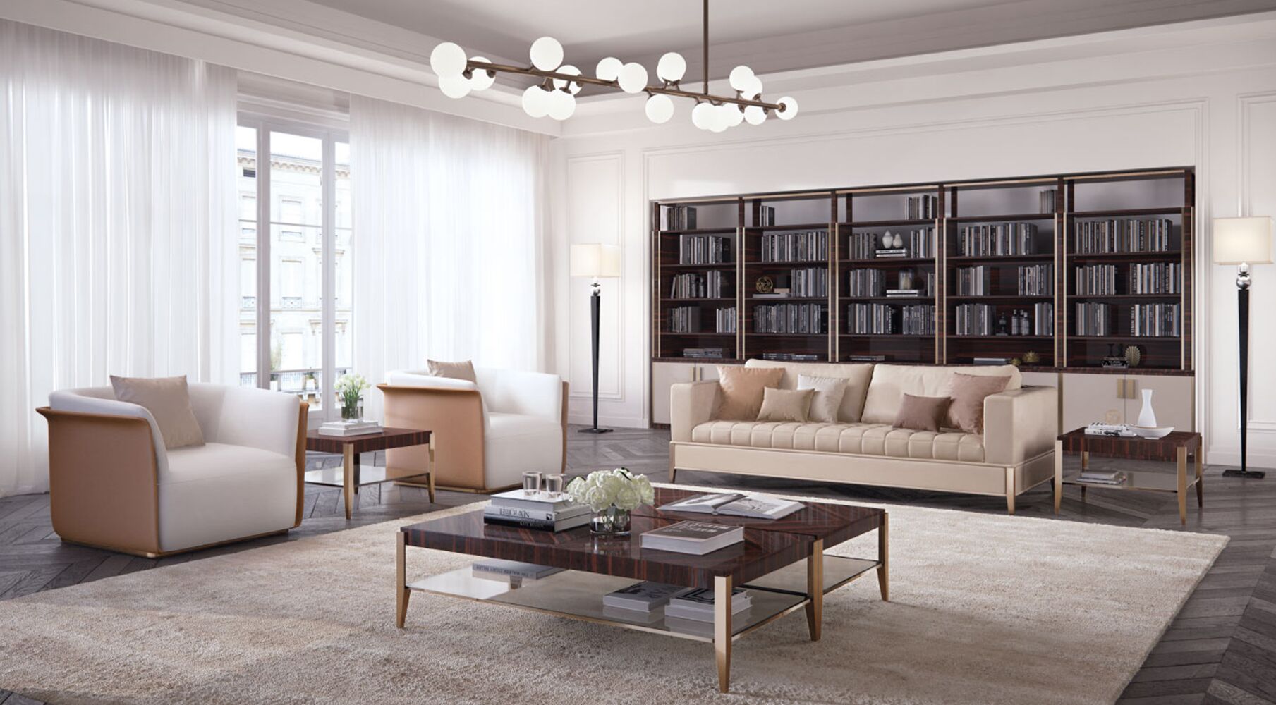 Sofy i otulające fotele ozdobione pokaźnymi stołami to bohaterowie salonu. Produkty, zrodzone z różnych międzynarodowych inspiracji, są częścią skoordynowanego i spójnego projektu stylistycznego.