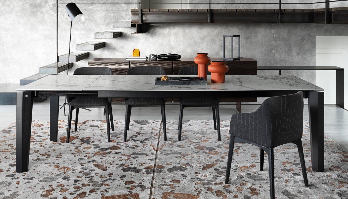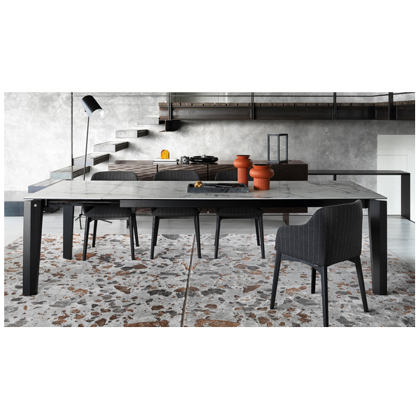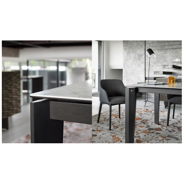 Stół rozkładany ALPHA jest doskonale dopasowany do idei inteligentnych, eleganckich i wszechstronnych produktów, które zaspokajają wszystkie normalne „zmienne” tętniącego życiem domu i czynią codzienne życie prostszym i przyjemniejszym. Jego konstrukcja jest wszechstronna dzięki połączeniu drewnianych nóg i możliwości wyboru między wieloma ceramicznymi blatami. Co więcej, lekko zwężane, wielopłaszczyznowe nogi zewnętrzne zapewniają maksymalny komfort gościom siedzącym przy stole. Nadstawki są montowane na ramie z prowadzonym ruchem otwierania.