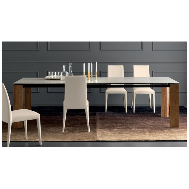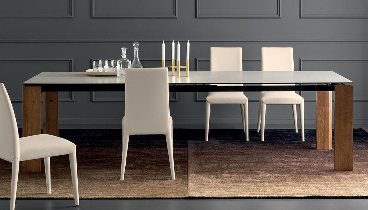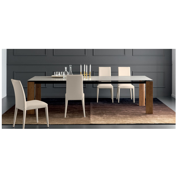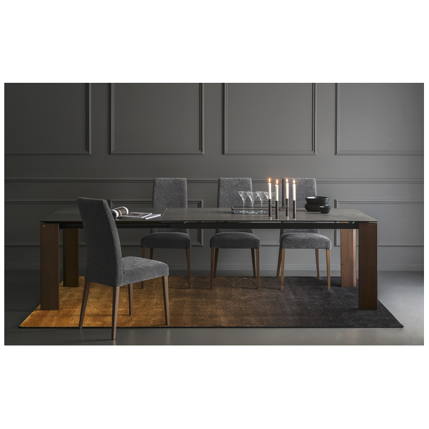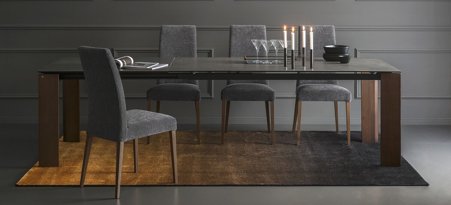 Proste linie i duża wszechstronność dla stołu, który pasuje do każdej sytuacji. Boulevard wyróżnia się wyjątkowo dużymi wymiarami i oferuje wyjątkową stabilność, a także łatwość wysuwania pomimo dużego bocznego skrzydła przedłużającego o długości metra. Ogromną zaletą jest to, że nogi są zawsze na rogach, niezależnie od tego, czy stół jest otwarty, czy zamknięty, dzięki czemu wszyscy goście mogą wygodnie usiąść. Ceramiczny blat i drewniane nogi nadają mu wyrafinowany i elegancki wygląd.
