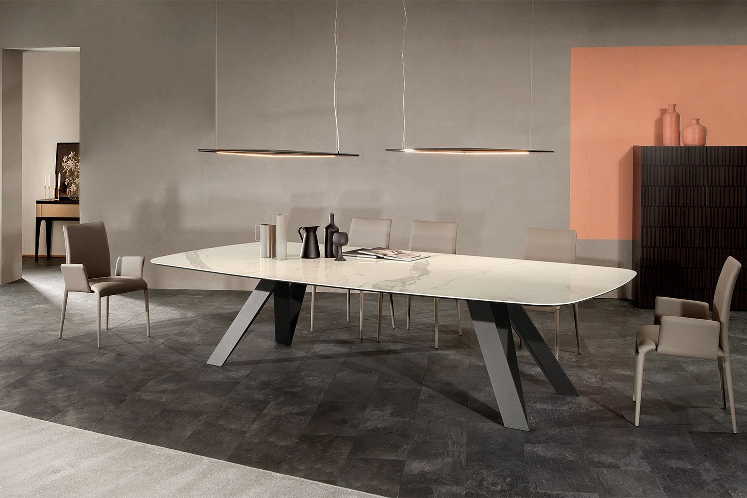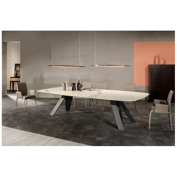 Stół Celtis o eleganckiej sylwetce imponuje w nowoczesnym domu. Podstawa w kształcie litery V dodaje artystycznego charakteru, a kontrast między nogami i blatem tworzy stylowy akcent. Ten stół jest idealny do organizacji przyjęć i dużych spotkań z dużą ilością miejsca na blacie w kształcie beczki. Dzięki zastosowaniu najlepszych materiałów stół Celtis stanie się podstawowym elementem wyposażenia. Wyprodukowany we Włoszech z niezwykłą dbałością o szczegóły, stół Celtis jest dostępny w kilku rozmiarach. Dostępne są różne opcje, które są odporne na zarysowania i plamy. Podstawa i rama mają różne wykończenia.