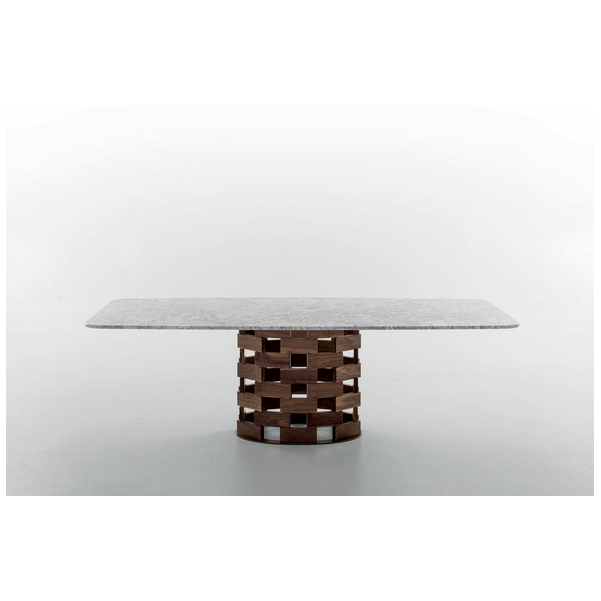 Colosseo marki Tonin Casa jest inspirowany klasyczną architekturą i ponadczasową sylwetką. Dzięki ponadstandardowemu profilowi jest idealnym wyborem dla dużych rodzin. Wyprodukowany we Włoszech stół to potwierdzenie nienagannego smaku i oko do oszałamiających projektów. Podstawa inspirowana splotem koszykowym sprawia, że ten stół jest centralnym punktem nowoczesnej salonu, a wyjątkowy design zestawia się z eleganckim i przestronnym blatem. Colosseo ma solidną drewnianą podstawę w różnych pięknych wykończeniach i blat dostępny w szerokiej gamie wykończeń ze szkła, ceramiki i marmuru. Wybierz między prostokątnym i podłużnym kształtem, które są dostępne w różnych rozmiarach.