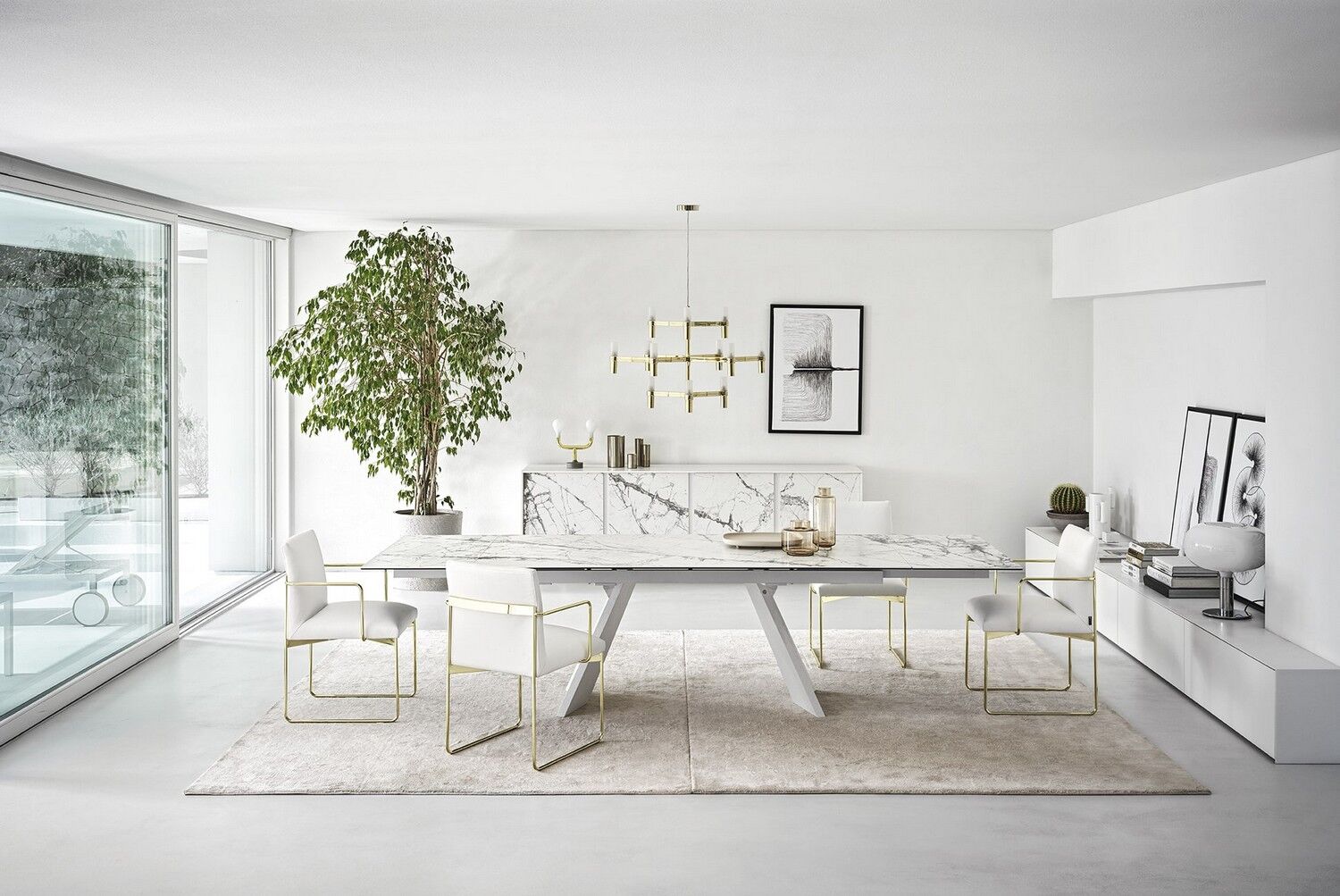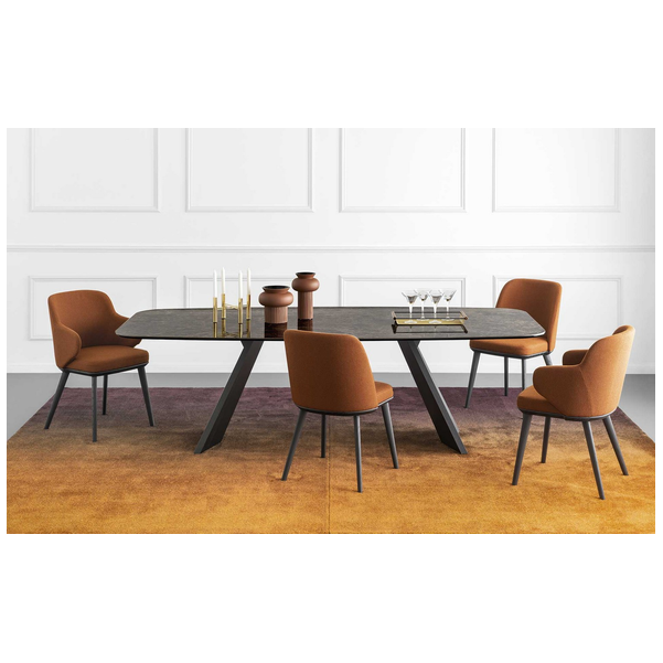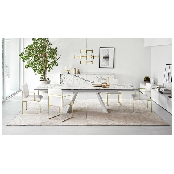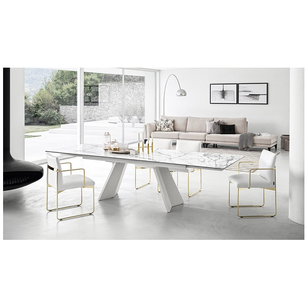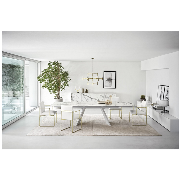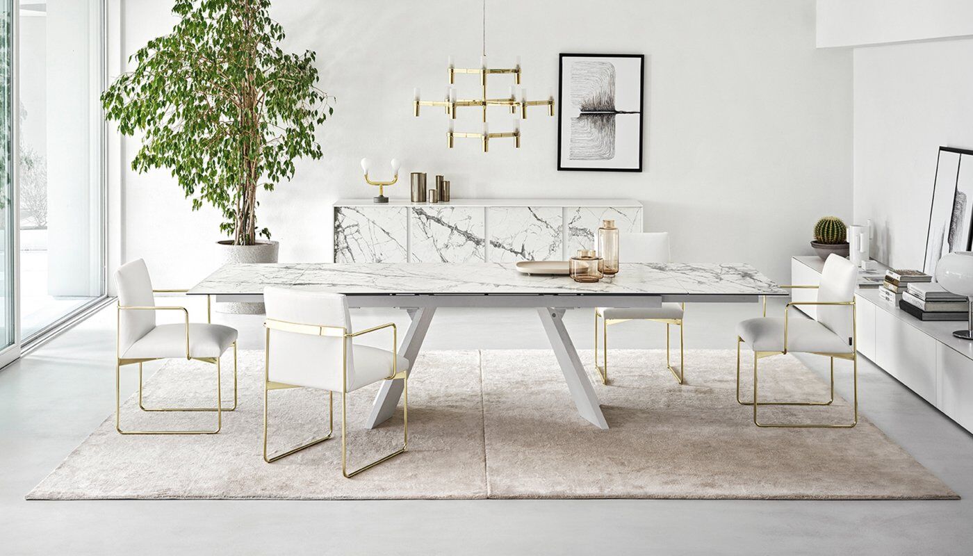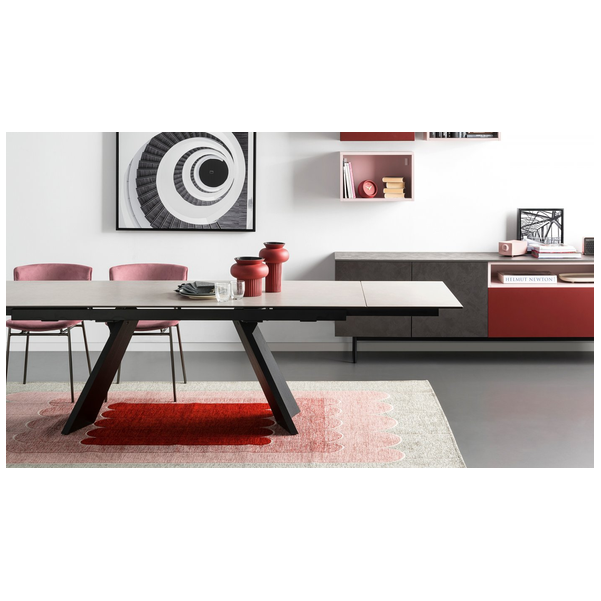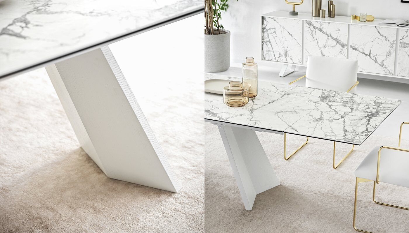 Icaro to rozkładany stół z fornirowaną drewnianą podstawą i ceramicznym blatem. Jest solidny, wytrzymały, wszechstronny i uderzająco elegancki dzięki prostokątnemu blatowi z dwoma bocznymi skrzydłami, które można indywidualnie otwierać. Skrzydła Icaro otworzą się w Twojej jadalni i nadadzą jej naprawdę wyrafinowany akcent.