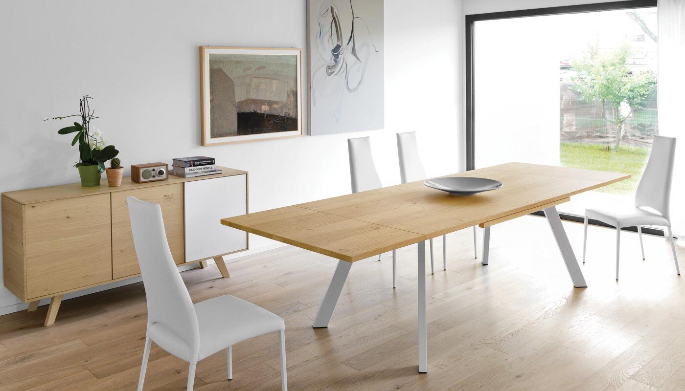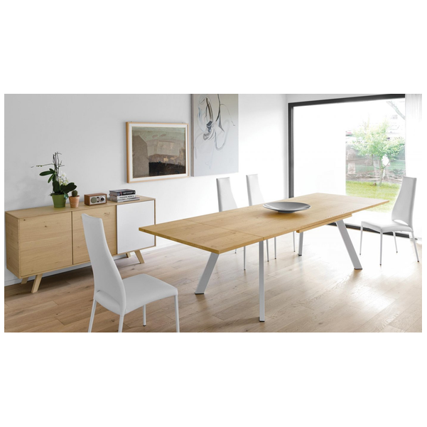 Blat ma krawędź z litego drewna na końcach i dwa skrzydła przedłużające, również drewniane, pasujące do blatu, z mechanizmem otwierania współpłaszczyznowego. Ponente jest idealny do dużych jadalni.